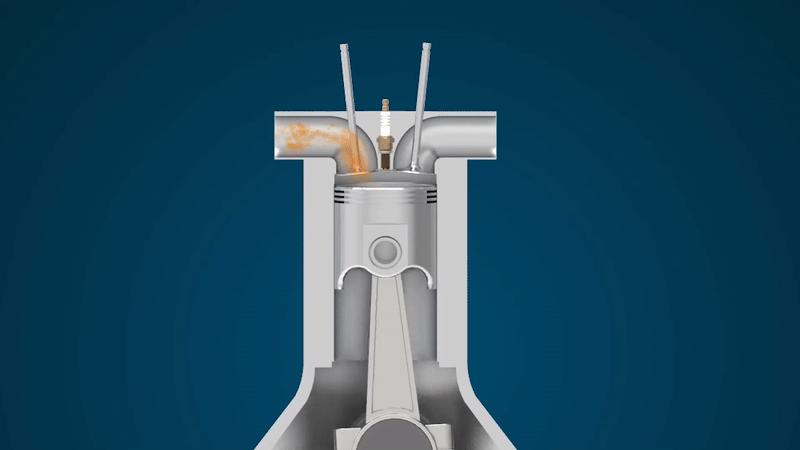 Чтобы понять, что такое детонация и почему её следует избегать, давайте на минуту заглянем в сам процесс сгорания. В нормальных условиях свеча зажигания воспламеняет топливную смесь, и фронт пламени равномерно распространяется по камере сгорания, как показано на гифке ниже. При 5000 об/мин процесс сгорания происходит 40 раз в секунду.