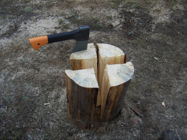 Нужно взять короткий толстый чурбачок, который нужно будет расколоть на 4 части (понадобится только две из них). Чурбачок желательно брать с грубой корой.