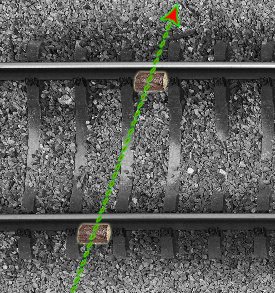 Выбираем место, где пути хорошо просматриваются в обе стороны, во избежание несчастных случаев. Кладём один кусок деревяшки прямым углом к рельсе с наружной стороны. По возможности между шпал или между болтов, чтобы он имел упор не только перпендикулярно рельсе, но и параллельно. Второй кладём ко второй рельсе с внутренней стороны на некотором удалении. Расстояние зависит от длины базы мотоцикла, но по моему опыту даже самый короткий мотоцикл, если это не питбайк, строго перпендикулярно рельсам не влезает по длине. После чего мотоцикл легко и непринуждённо перелезает через рельсы, не боясь сесть на них брюхом или застрять между рельс, как это часто бывает, когда перетаскиваешь его руками. При этом мотоцикл можно вести "под уздцы" или ехать на нём - это уже зависит от ваших умений управления мотоциклом и конкретной ситуации.