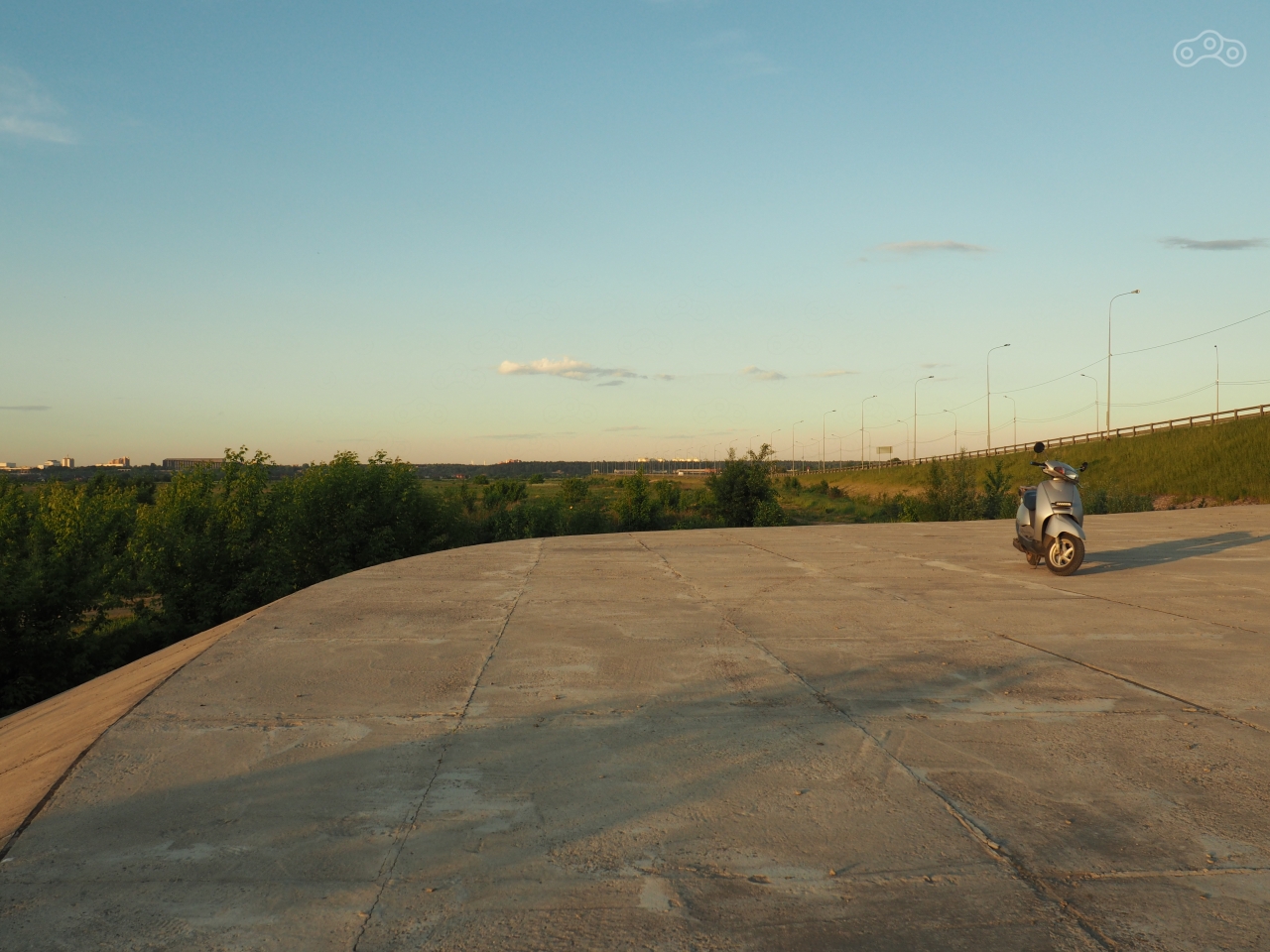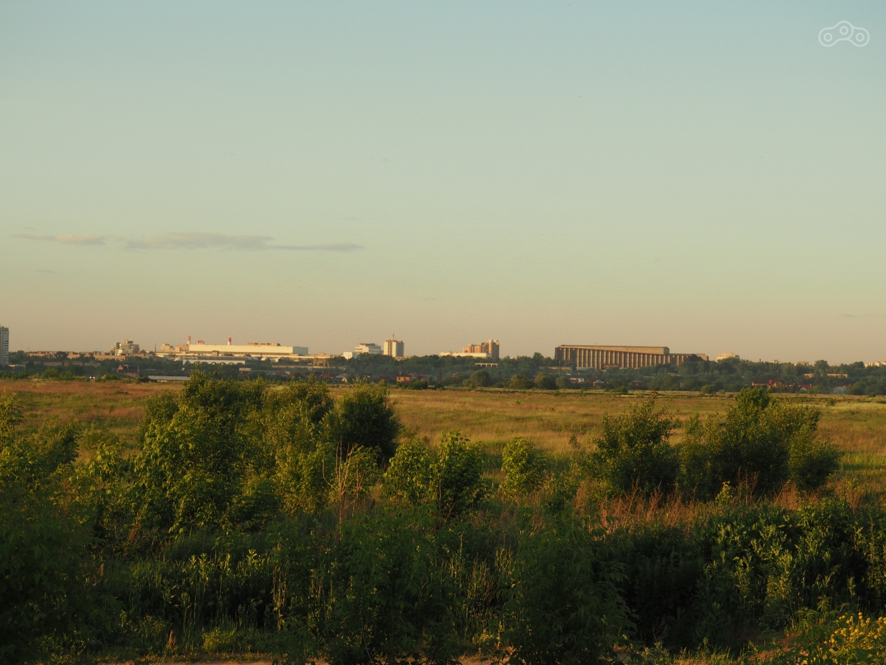 Место своеобразное. И весьма многолюдное вечерами. Кто на речку рыбу ловить, у кого интим, у кого пивка попить на природе. А мне с Лидией Федоровной приспичило закат встретить. Вот кстати на горизонте и сам Жуковский со строениями известного лётного института.