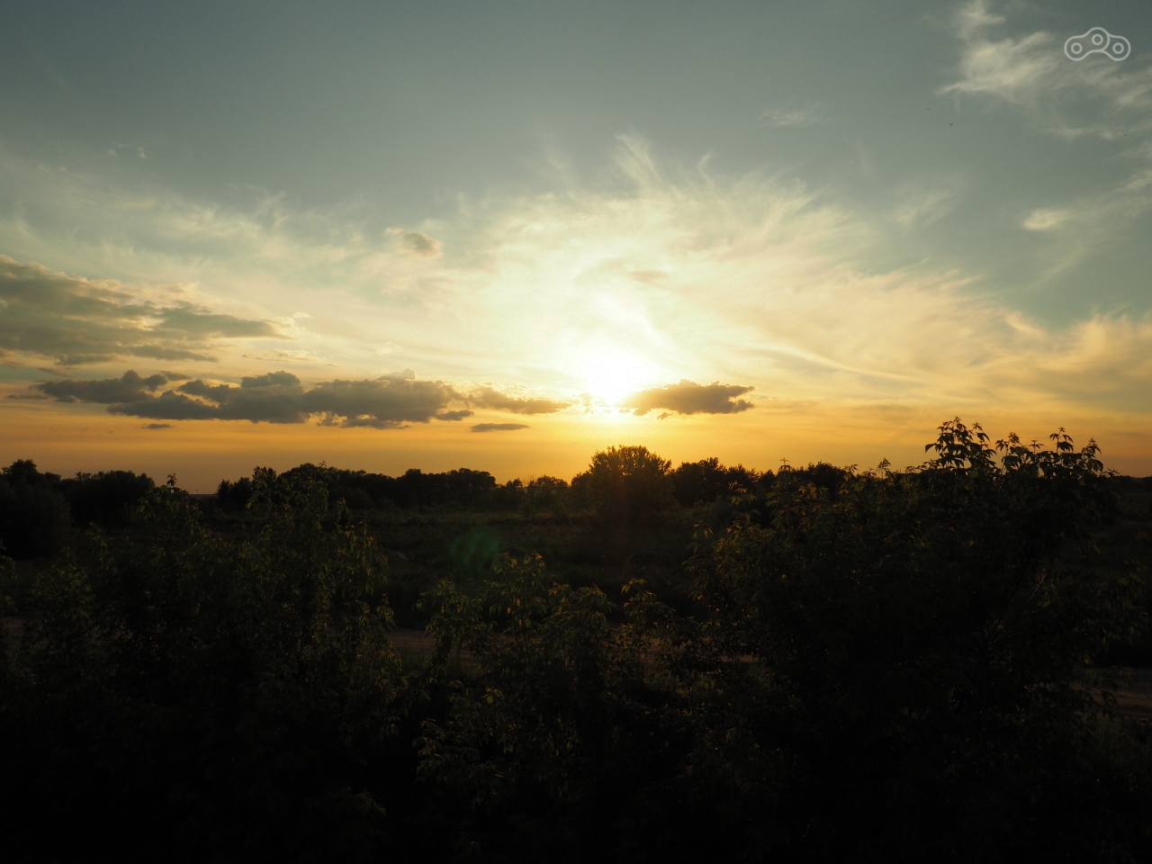 Вот аккурат с насыпи этой самой трассы и отлично встречается закат.