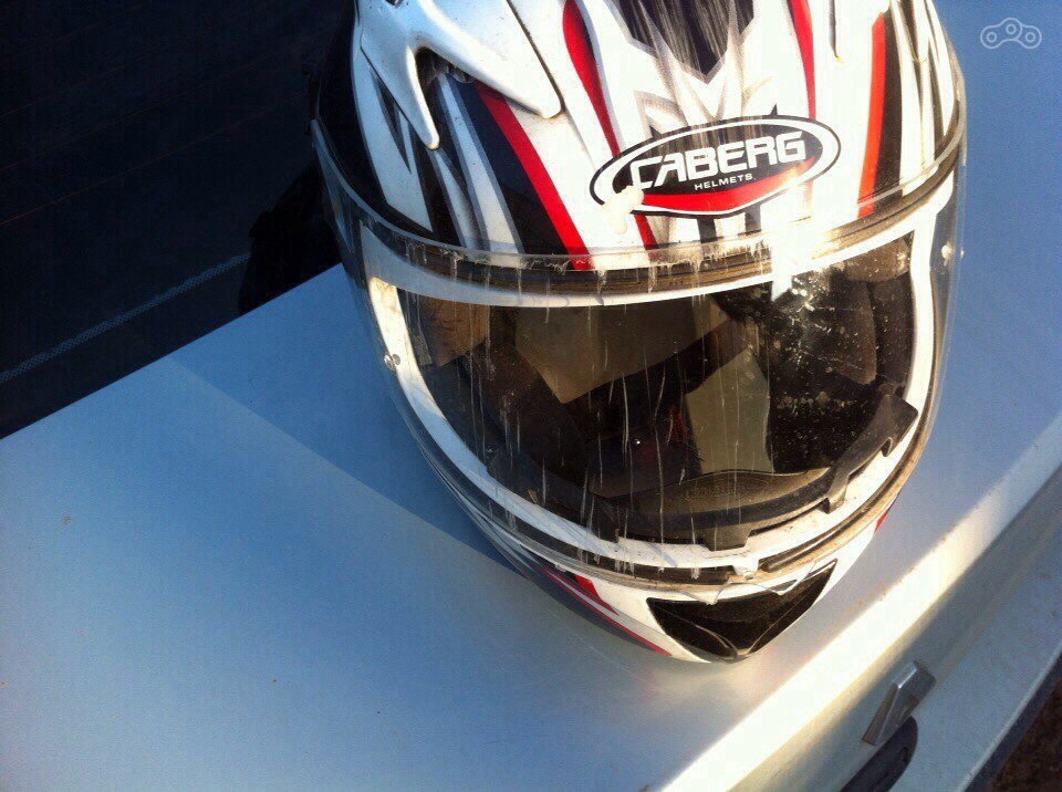 А вот фоточка моего интеграла после ДТП в 2016 году... Я уж не знаю, на сколько тут важно, что это именно интеграл, но шлем определённо отработал на славу.