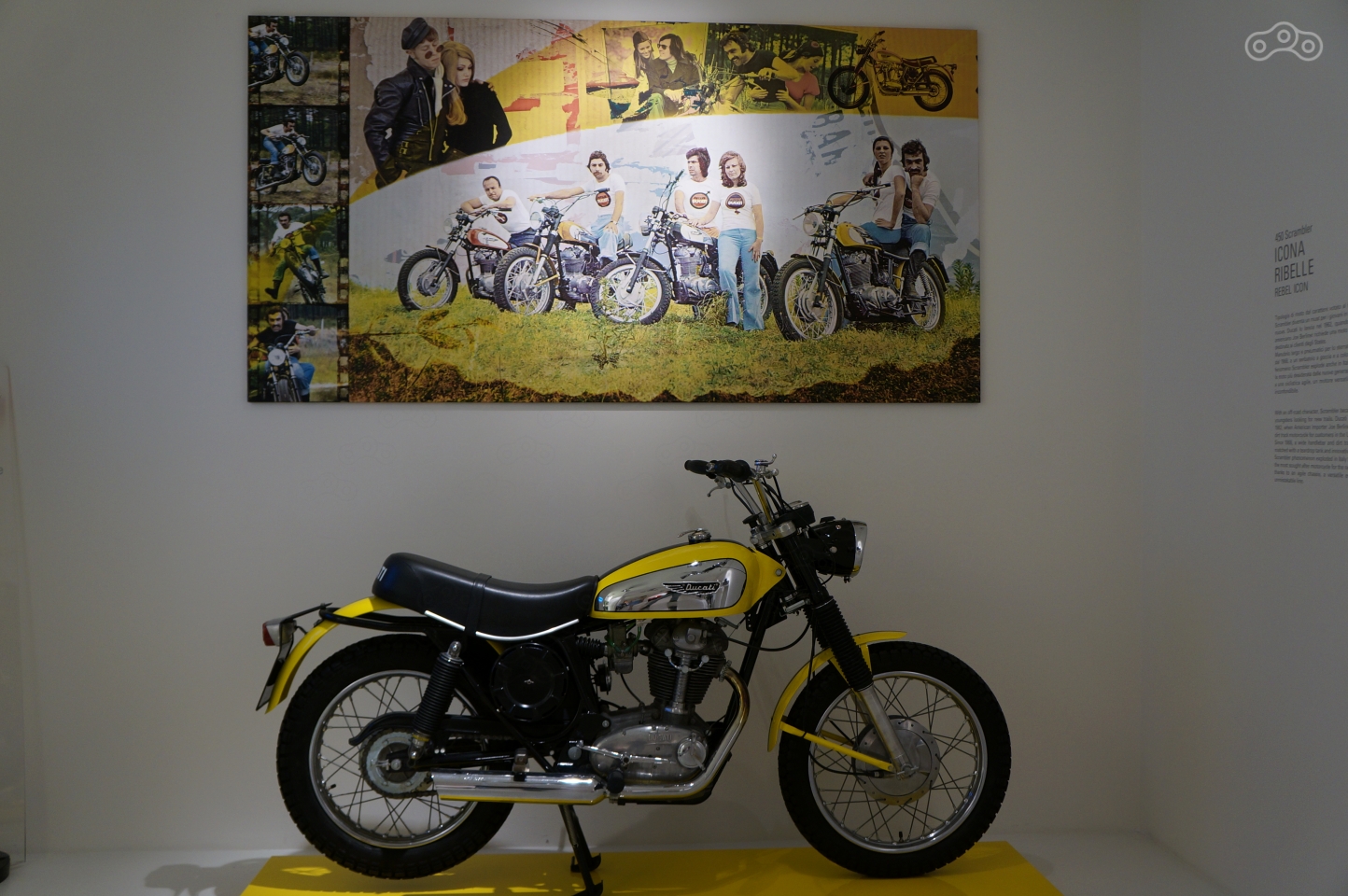 Завершается экспозиция серийных мотоциклов бренда новейшей историей – в зале на особом месте свежий Scrambler, вокруг – Desmosedici RR, являющийся болидом Moto GP омологированным для дорог общего пользования, 1199 Superleggera, Multistrada 1200 и спортивный Ducati 1098 – интересные мотоциклы совсем недавнего прошлого, ни один из которых не повторил успехов пращуров, но и не стал провалом.