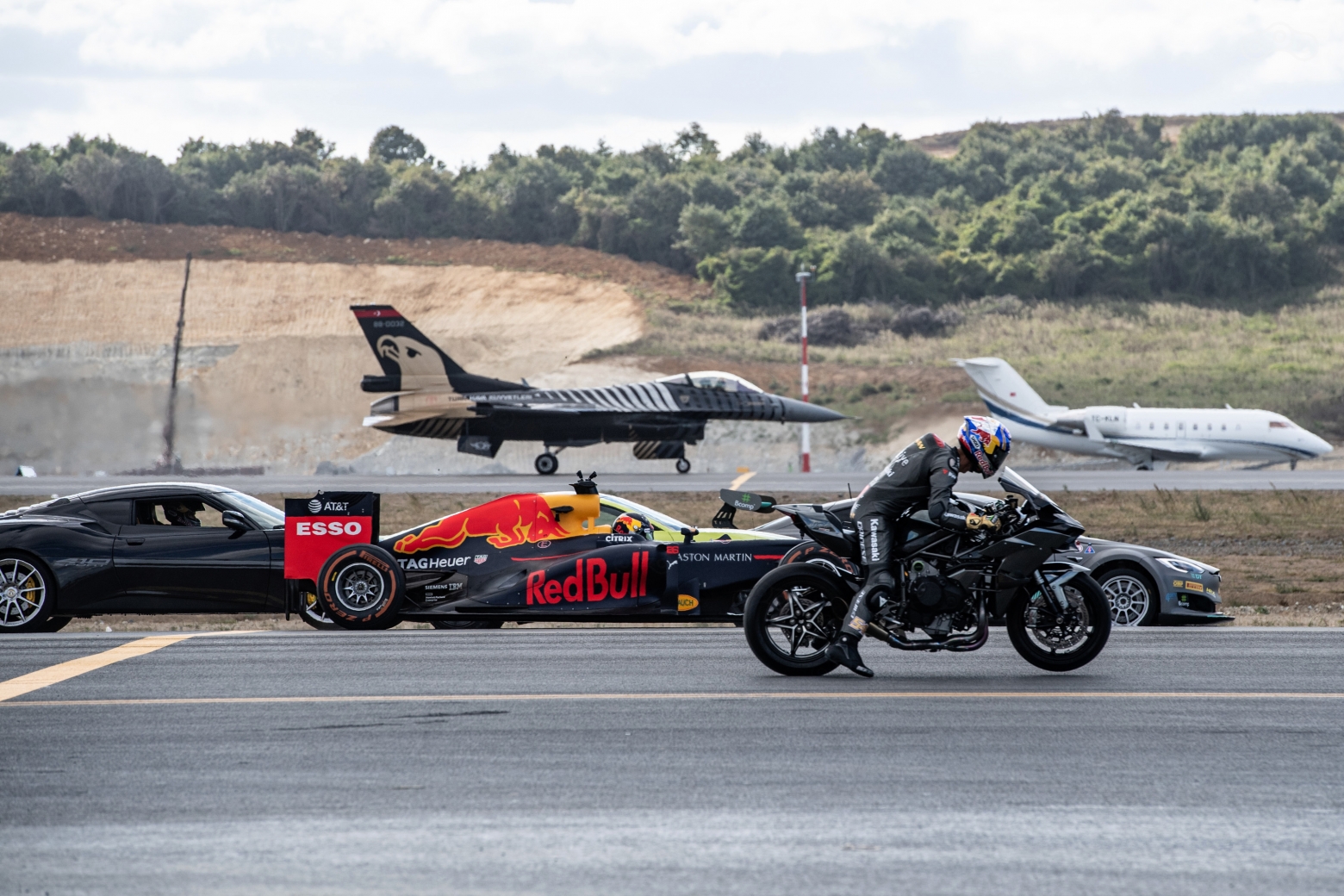 На прошедшем в минувшие выходные (20-23 сентября 2018 года) в Стамбуле фестивале авиации, техники и космических технологий Teknofest состоялись масштабные показательные выступления пилотажных групп и гонщиков-экстремалов, которые вылились в совместный спринтерский заезд на четверть мили по взлётно-посадочной полосе местного аэропорта.