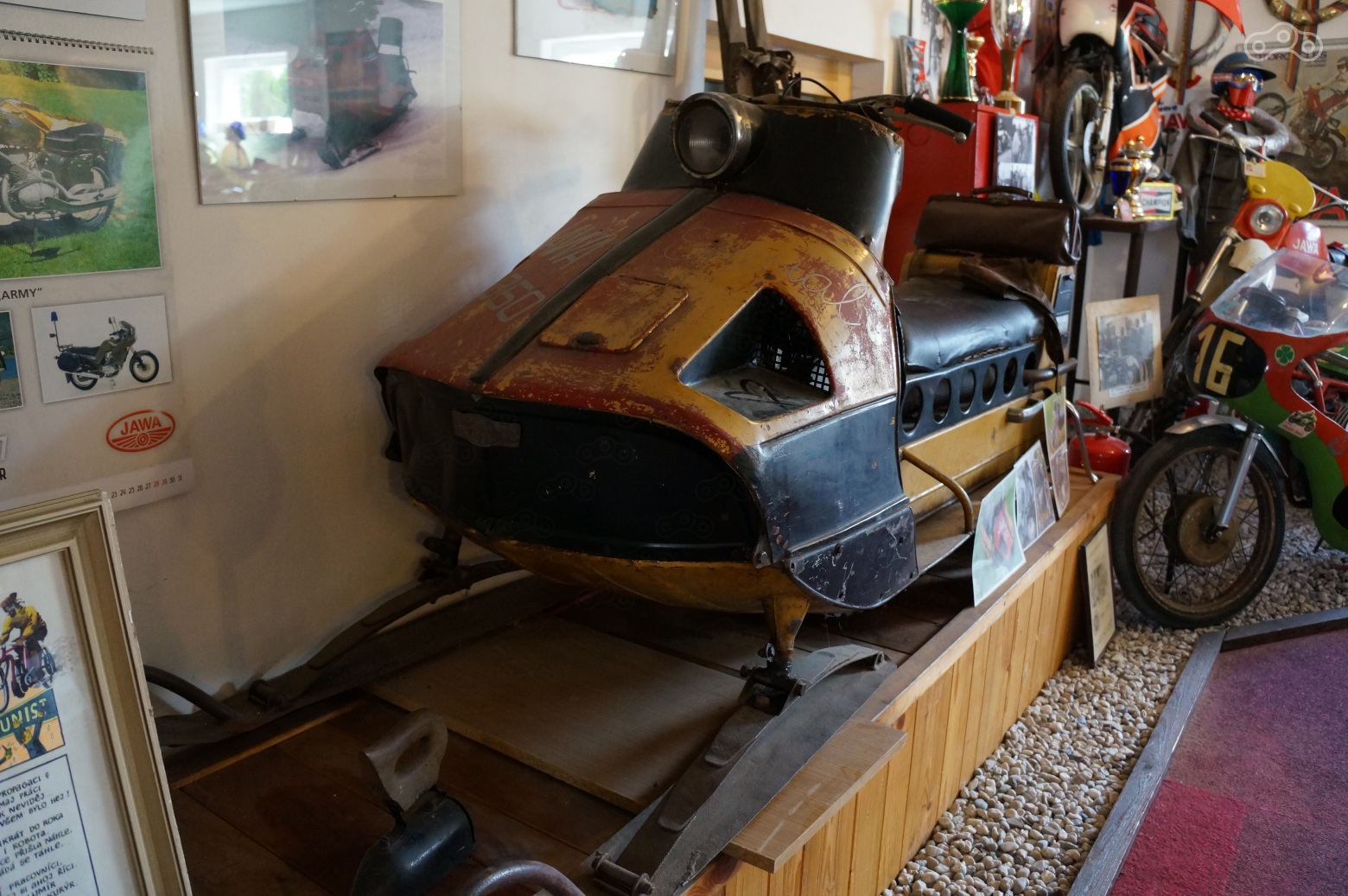 Сам музей довольно тесный, но в нем есть все, от довоенных моделей до последних, уже китайских поделок завода. Есть и всякие мелкосерийные штуковины, вроде снегохода Jawa, а так же целый сарай с разными самоделками - их хозяин музея тоже собирает. Увы, большой репортаж с рассказом об истории бренда и развитии моделей я не осилю, зато, наконец, выложу фотографии.