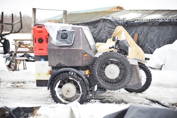Он отправился в путь 2 февраля на серьёзно доработанном «Днепре». На мотоцикл были поставлены подогрев ручек и седла, ветрозащита ног и шипованная резина-шестирядка. Но главным тюнингом стал отапливаемый кунг для ночёвок в мороз. Он позволял путешественнику останавливаться для отдыха в любом месте — зимняя езда на отечественном мотоцикле в условиях короткого светового дня имеет свои нюансы. Чтобы не угореть в прямом смысле, внутри были установлены датчики дыма, угарного и углекислого газа. А для того, чтобы снизить бюджет поездки, он попросил перед выездом маму о помощи, и она сшила ему тёплый трёхслойный комбинезон, мешок для сушки одежды, перчатки и жилет с электроподогревом. Мама — это мама!