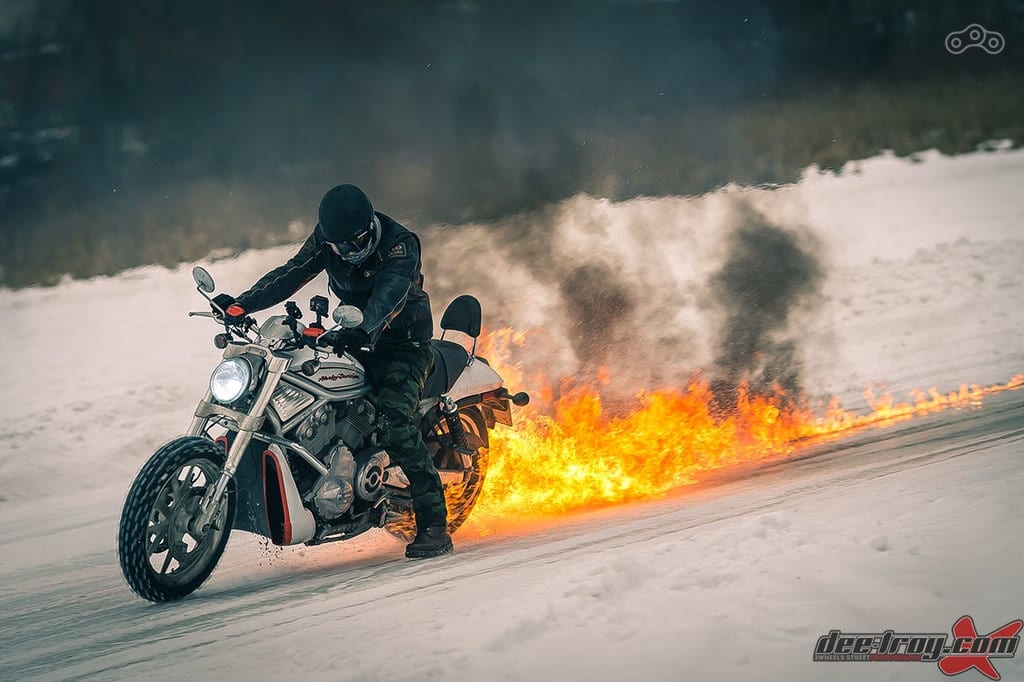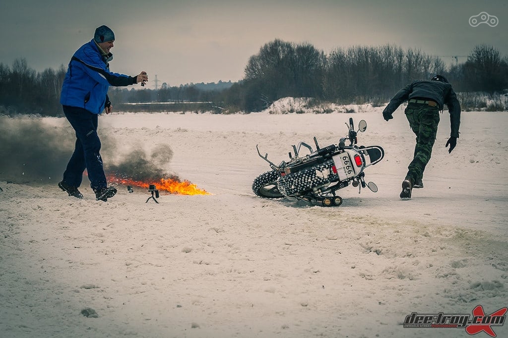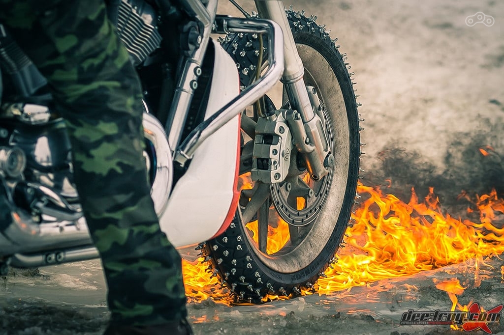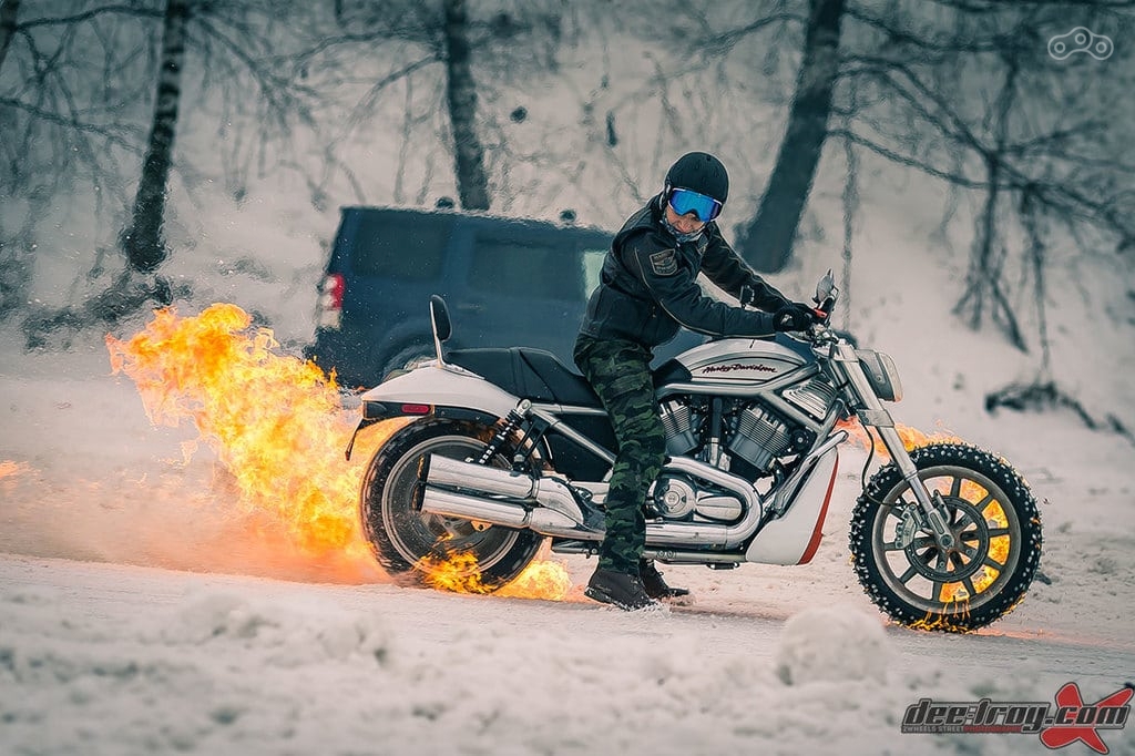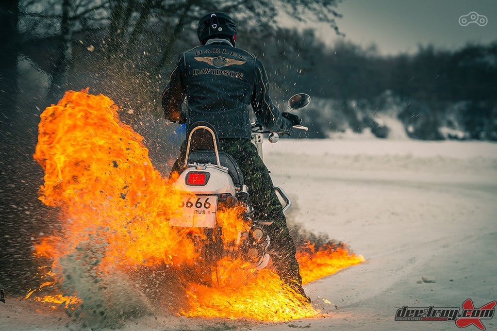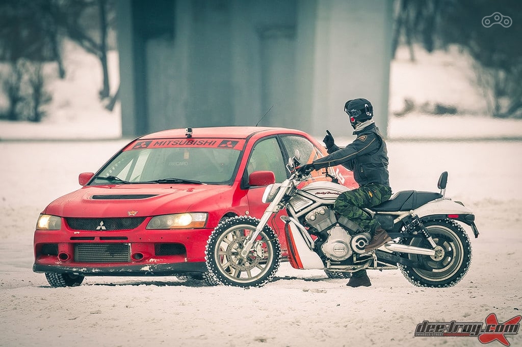 Ну и поскольку я всегда за любой кипиш, включая голодовку, если это пойдет на пользу делу, то когда он написал мне несколько недель назад, что хочет воткнуть себе на Харли шипованные покрышки и погонять по льду Москва-реки, разумеется, не отказался весь процесс поснимать.