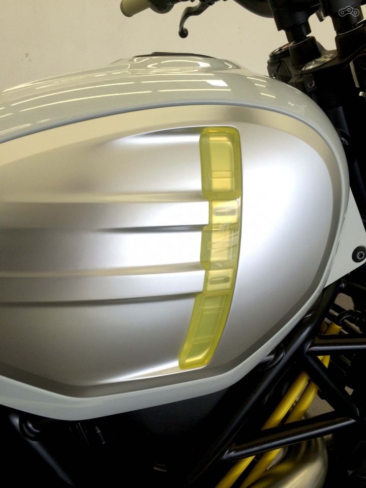 Ducati Scrambler Desert Sled, модифицированный под чутким руководством Алекса Эрла из ателье Earle Motors, получил ряд интересных решений, которые очень понравились специалистам центра дизайна Ducati. Среди них двусторонняя рычажная подвеска заднего колеса с оригинальным маятником и амортизаторами, элегантный резервуар в хвосте, а также индикатор на боку топливного бака мотоцикла.