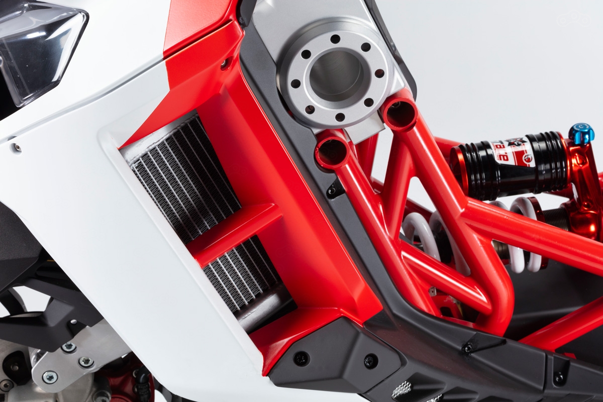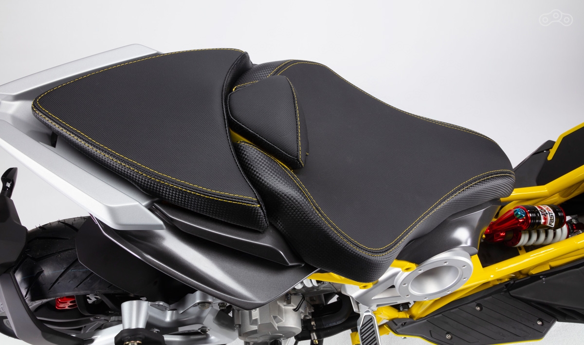 Новинку отличает более агрессивный дизайн, чем у предшественника, но фамильные черты сохранены. Спереди установлено увеличенное на дюйм колесо размерности 120/70-12, сзади – того же диаметра что и прежде, но с жирной покрышкой 150/70-13.
