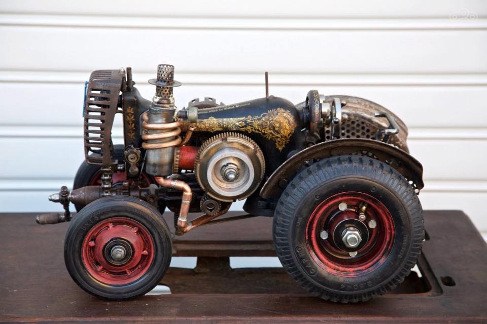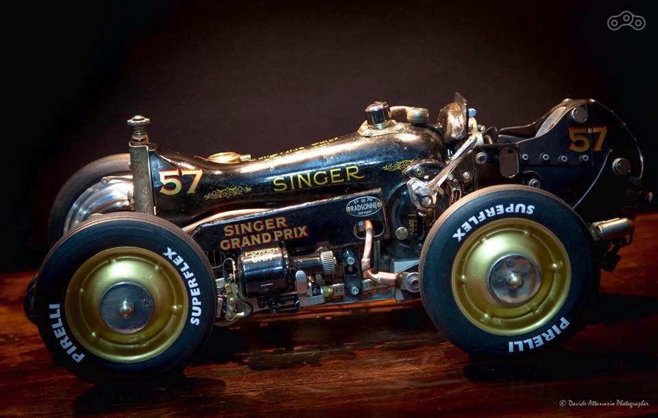 Пожалуй, это самое необычное применение знаменитой швейной машинки, на которой наши предки шили одежду. Минибайк выполнен в масштабе 1:1, он укомплектован вполне работоспособными подвесками, органами управления и даже оптикой.