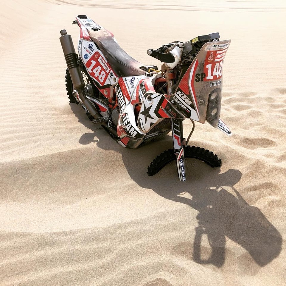 Однако, этот Дакар сложился гладко не для всех россиян. Дмитрий Агошков, выступающий в классе мотоциклов на раллийном KTM 450 Rally, не смог дойти до финального этапа по техническим причинам. Его мотоцикл постоянно глох в дюнах, поэтому было принято решение об эвакуации гонщика и досрочном завершении гонки.