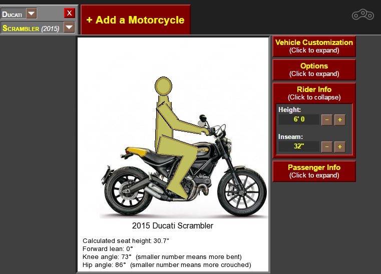 по поводу размерности пилота и мота - хорошая идея. Есть возможность добавить еще вариативность посадок, на примере сайта http://cycle-ergo.com/ :