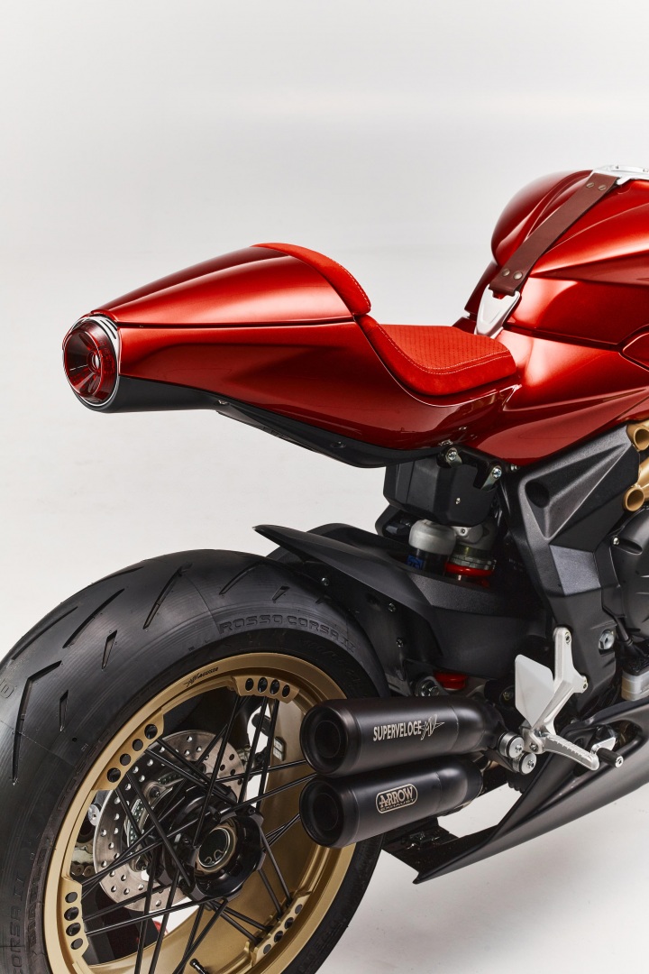 Эксклюзив в цветах итальянского триколора с золотой деталировкой оснащён круглой фарой и круглым стоп-сигналом, у него выпускная система Arrow с тремя асимметрично расположенными глушителями, предназначенная исключительно для трекового использования, крышка для задней части седла, изготовленного из красной алькантары и рулевая колонка с индивидуальным порядковым номером.