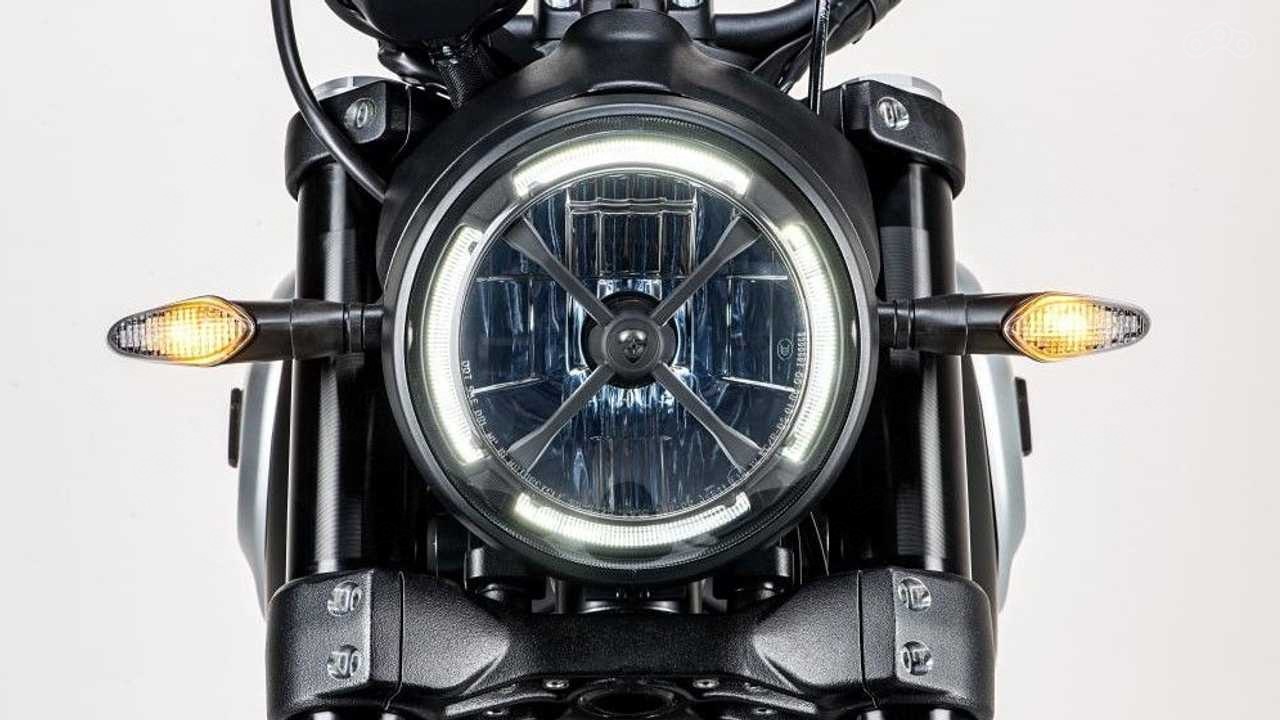 У мотоцикла чёрная стальная решётчатая рама с чёрным алюминиевым подрамником, чёрная окраска Dark Stealth, чёрное седло и чёрная облицовка новой формы, придающая ему компактный и динамичный вид. В передней части визуально главенствует фара со стеклянной линзой, ДХО и чёрной Х-образной решёткой, характерной для семейства Scrambler.