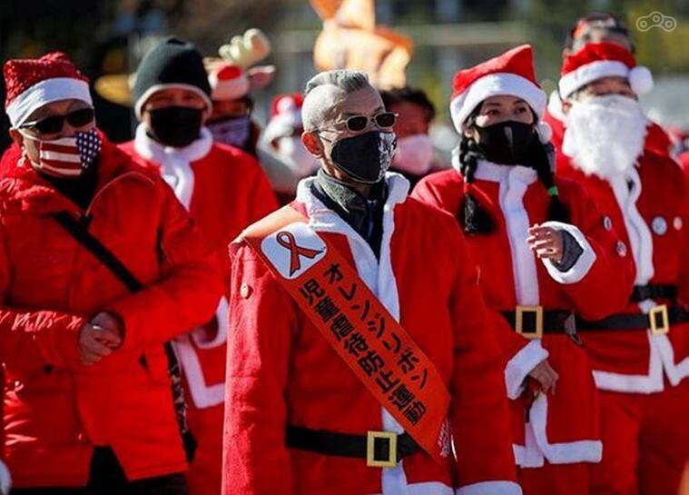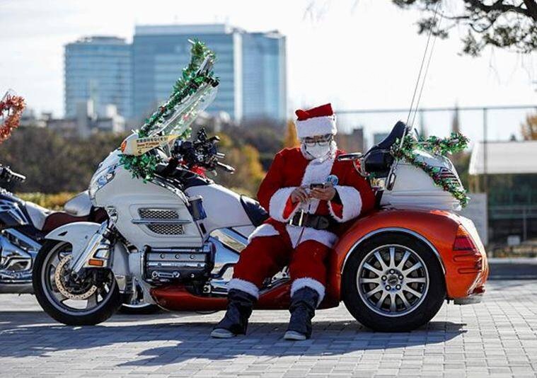 В столице Японии состоялся ежегодный проезд колонны мотоциклистов в костюмах Санта-Клаусов по центральным улицам города. Обычно в этом мероприятии участвуют около тысячи мотоциклов, однако в этом году из-за коронавируса приехало примерно в десять раз меньше байкеров.