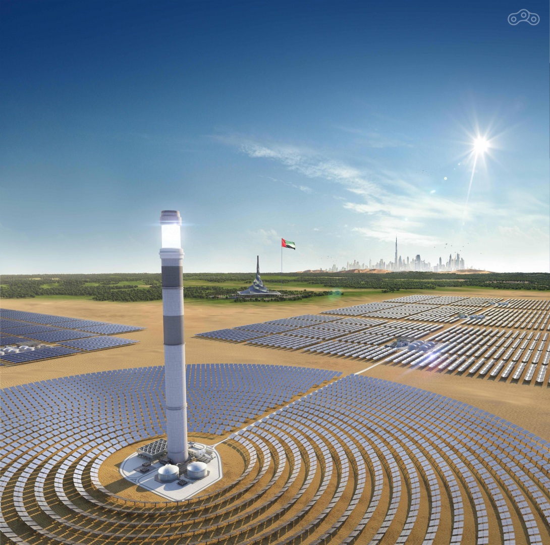 Центральная башня солнечной фермы Мохаммеда бин Рашида Аль Мактума