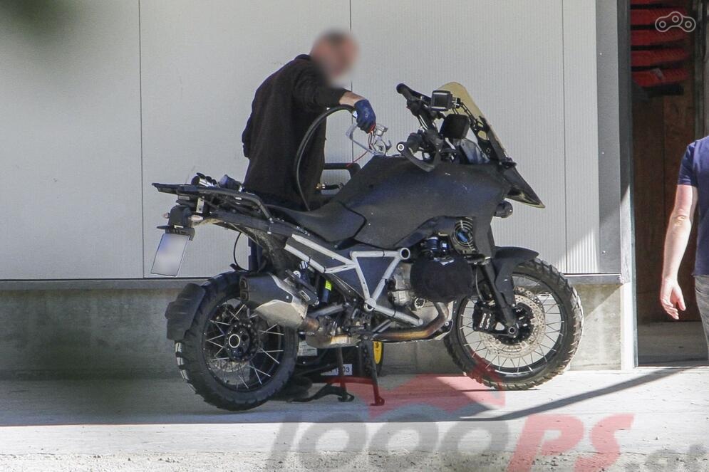 На фото видно, что до серийной сборки далеко, много участков двигателя, рамы и подрамника скрыты от глаз. Однако рабочий вариант облицовки уже показывает серьёзную разницу с R1250GS, выпускающимся сейчас.