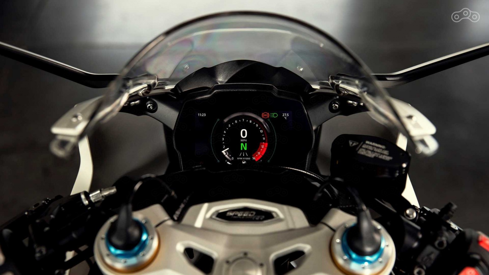 Электронный пакет включает пять режимов ручки газа, вилли-, трэкшн- и круиз-контроль, угловую АБС, квикшифтер, 5-дюймовый TFT-дисплей и систему совместимости со смартфоном My Triumph. Уже готов каталог заводского тюнинга из тридцати позиций.