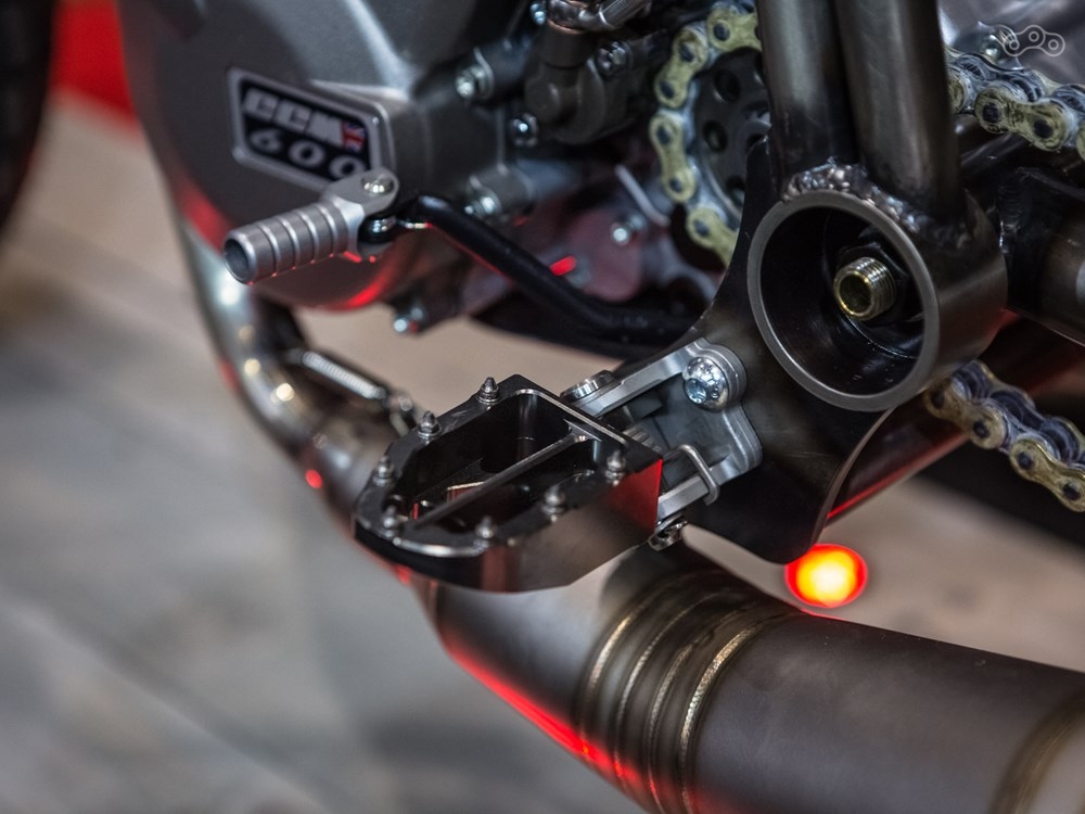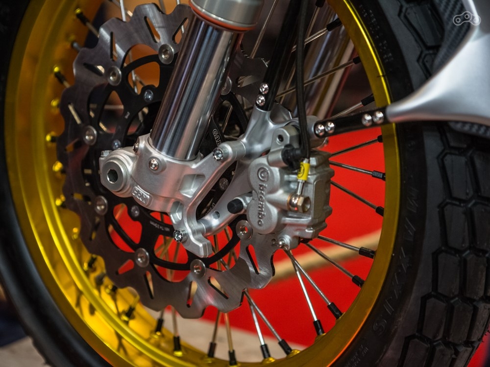 Подвески WP спереди и сзади похожи на те, что устанавливают на современные KTM и Husqvarna, а вот колеса свои, ведь именно 19-ти дюймовые спицованные обода лучше всего соответствуют замыслу авторов проекта, постройке «чистого» и простого мотоцикла без лишних деталей.