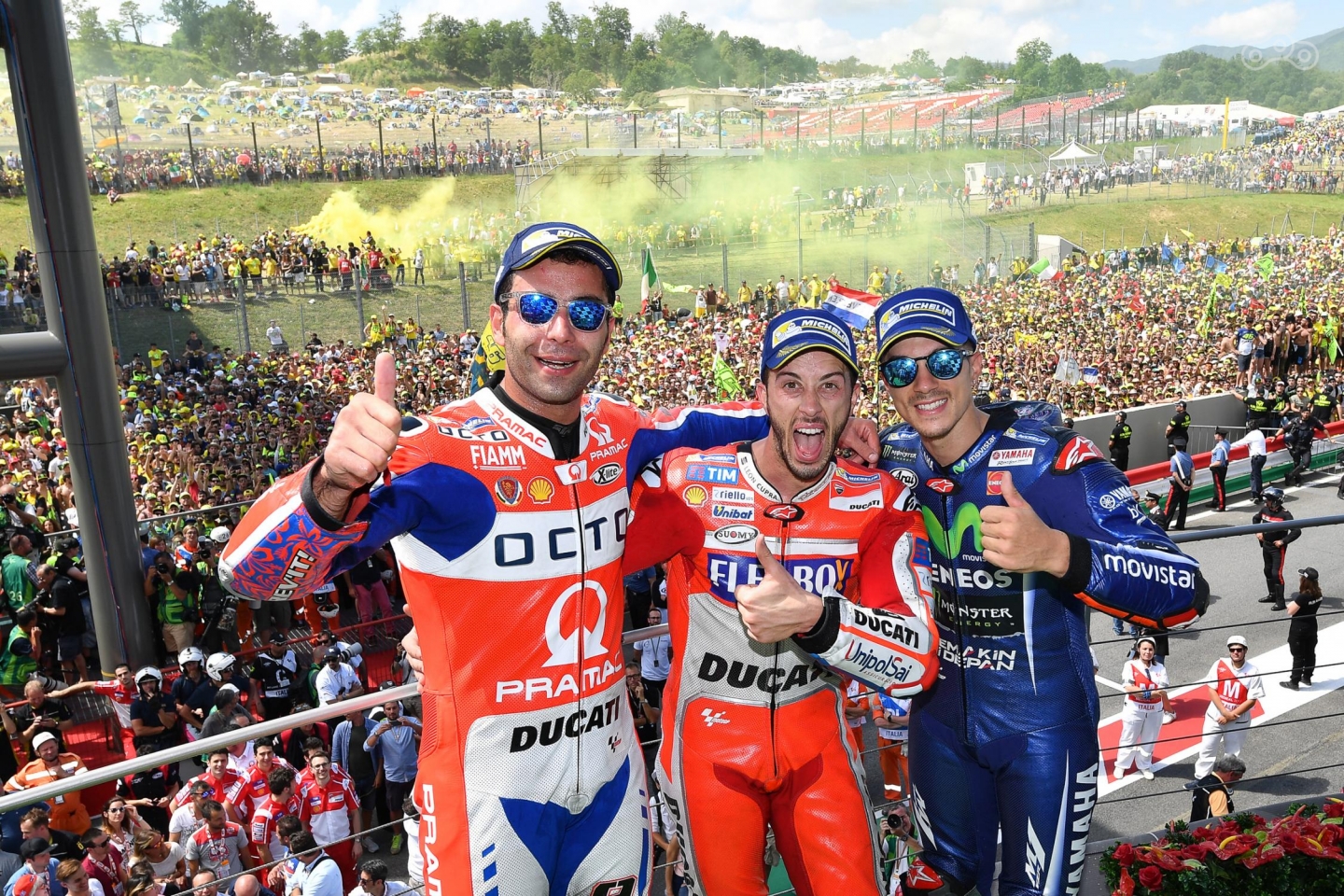 Андреа Довициозо, Данило Петруччи и Маверик Виньялес, занявшие подиум Гран-При Италии