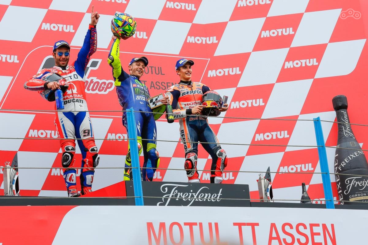 Валентино Росси, Марк Маркес и Андреа Довициоззо на треке Ассена