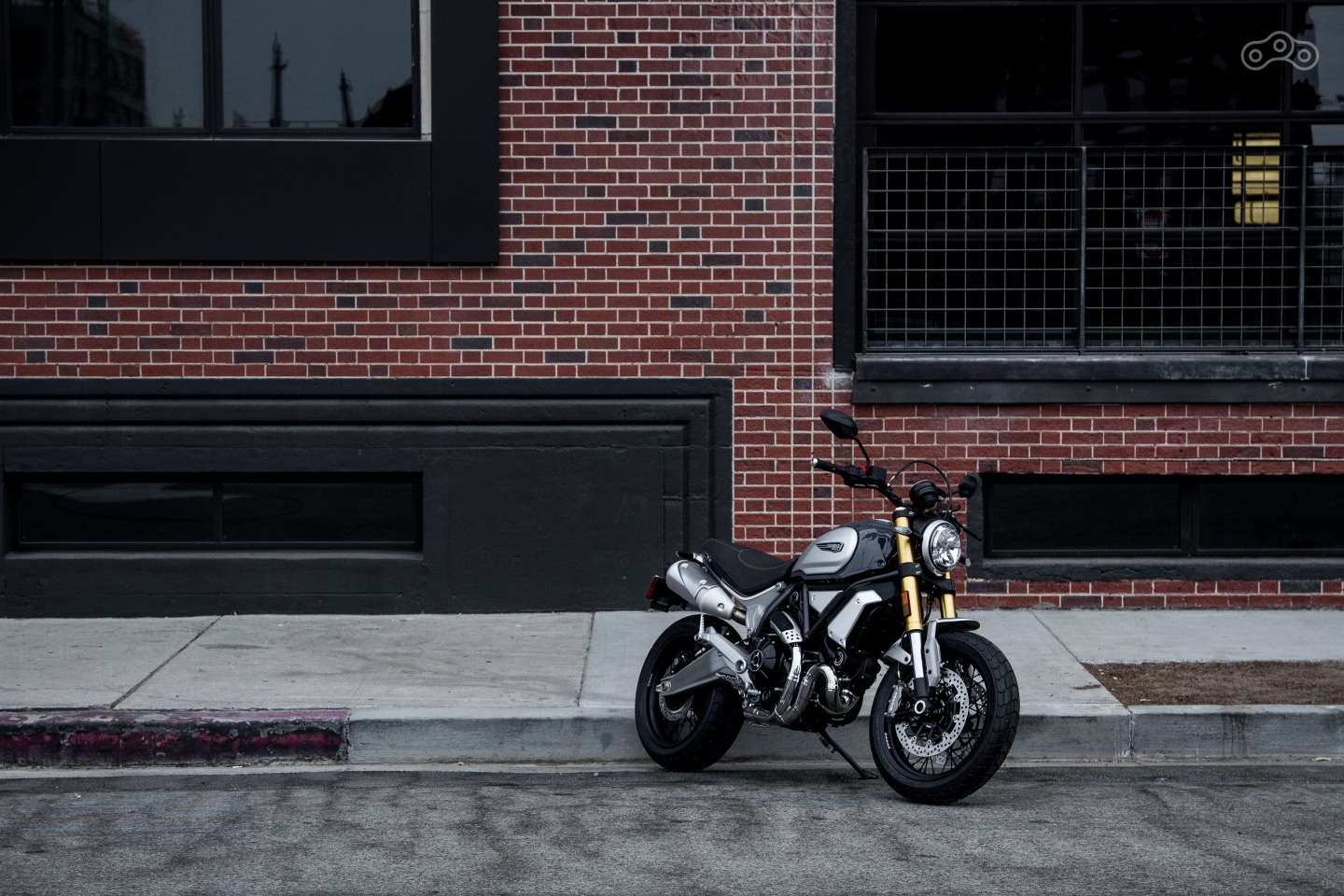 Первым, под бурные аплодисменты из зала, на сцену выкатили старшего брата Scrambler с мощным 1079-кубовым L-твином, позаимствованным у модели Monster 1100. Десмодромная силовая установка новой модели производит 86 л.с. при 7500 об/мин максимальной мощности и 88,4 Нм при 4750 об/мин максимального крутящего момента, а это означает, что мотоцикл будет очень напорист и тяговит во всём диапазоне частот вращения коленвала.