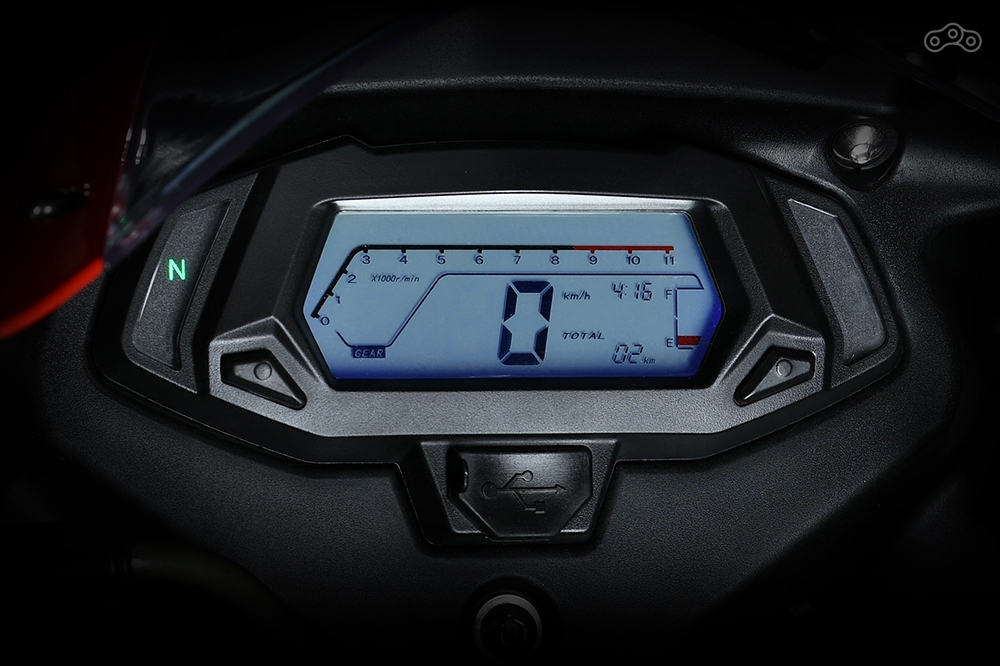 Начинка байка далека от того, что предлагают итальянцы: в недрах рамы типа птичья клетка прячется 150-кубовый сингл, разгоняющий 130-килограммовый мотоцикл почти до 125 км/ч. Примечательно, что не смотря на «взрослую» эргономику, подвеску и тормоза, на мотоцикл установлены сравнительно небольшие, 14-дюймовые колёса. В глаза это не бросается, да и на высоту по седлу не влияет – полноценных 780 мм вполне достаточно, чтобы уместить среднестатистического азиата. К слову, мотоцикл предназначен для реализации именно в азиатских странах.