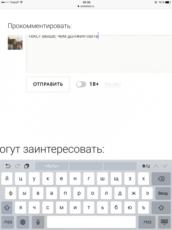 Заметил два косяка на iOS (iPad), в первом случае аватарка сливается с подписью, во втором случае текст в поле ввода отображается выше, чем должен быть.