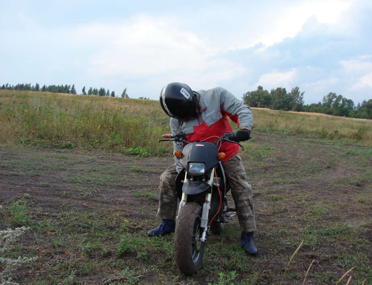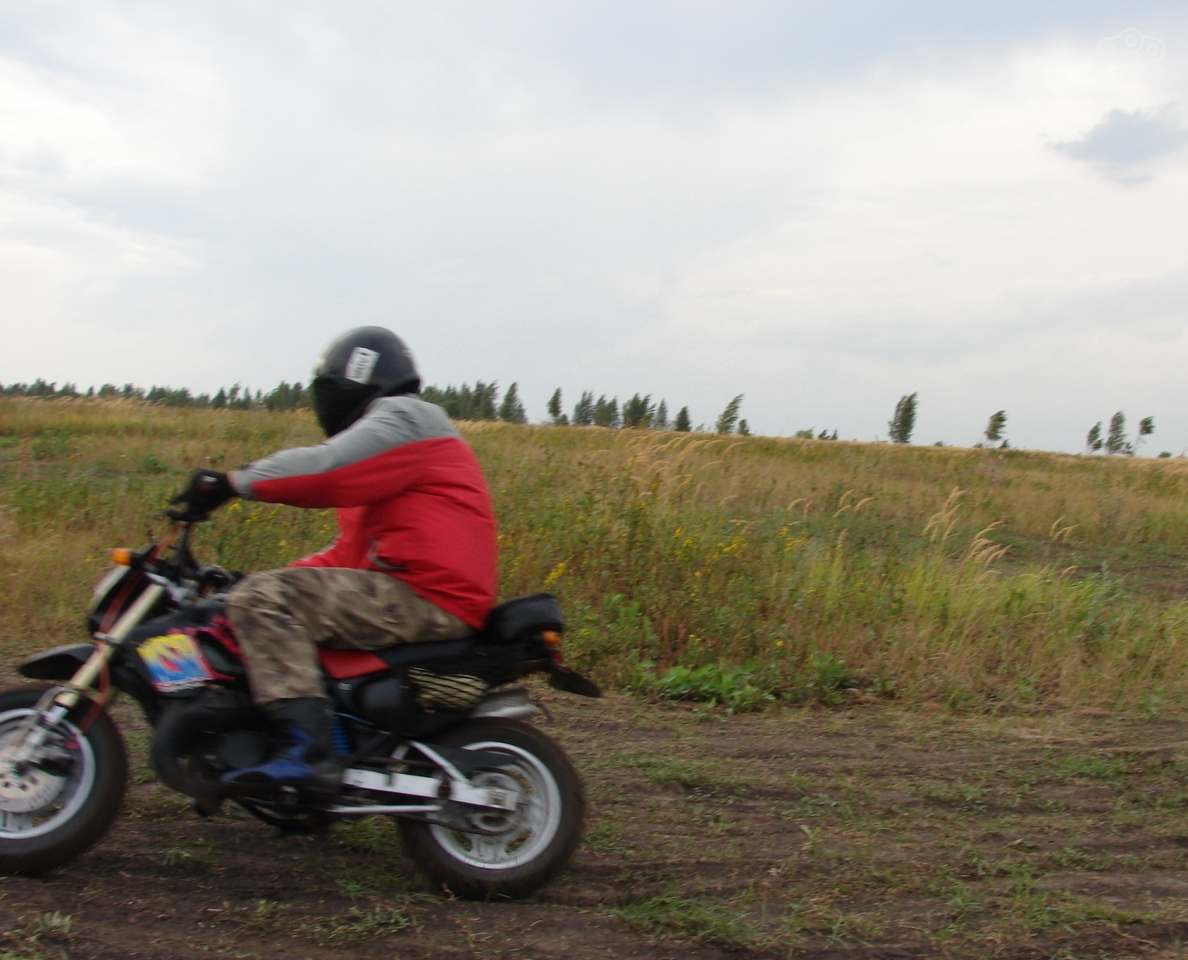 Теперь наоборот . После долгих уговоров вежливыми печатными словами , сынуля , таки , сел на мот . Он как бы к тому времени уже имел несколько кубков и прочих наград за свои достижения в чемпионате по прокатному картингу , да и опыт вождения различной малокубатурной техники у него тоже имелся , но что то в те дни он чудил и просто ну никак не хотел гонять на моте .