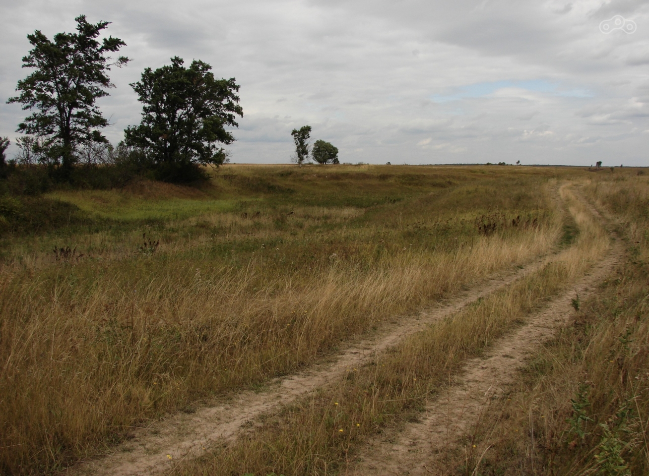 Но пока стоял и разглядывал трассу сверху оврага заметил неподалёку накатанную в траве восьмёрку . Вот это мне и надо .
