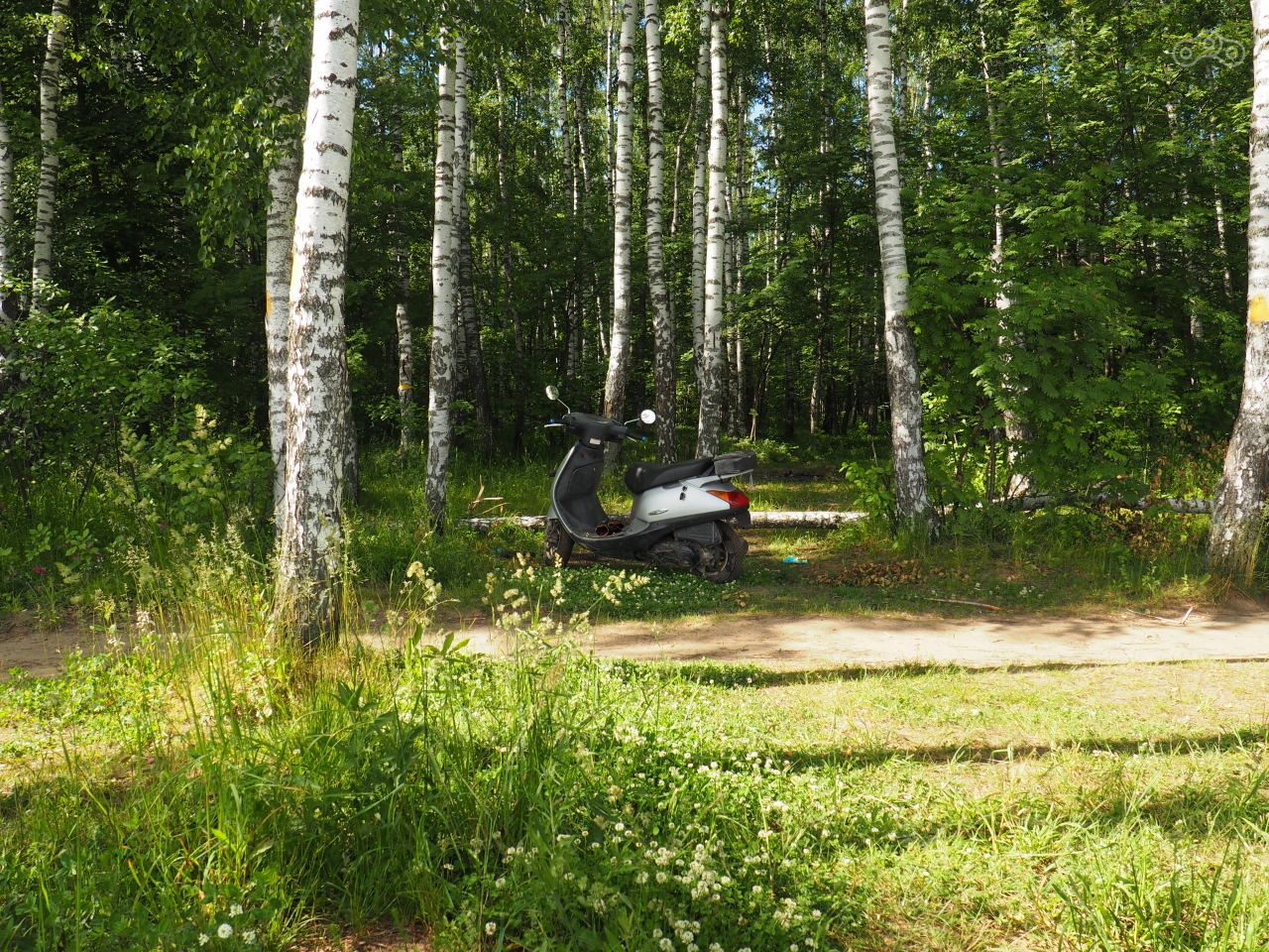 А знаете чем мне нравится моя Лидия Фёдоровна ? Тем что на ней можно влезть в такие дебри , что иногда самому становится страшно . Был у меня до неё питбайк Кавасаки . На нём и по ДОПам можно было гонять , однако чуть дождик , так весь в дерьме приезжаешь. А на скутере мансов приехать грязным минимум . Однако на питбайке можно лазить по лесам и носиться в своё удовольствие по тропинкам не гремя пластиком . Однако снова вылезает проблема с объёмами груза . На питбайке весь багаж располагается в рюкзаке . А вот на скутере багаж не проблема .
