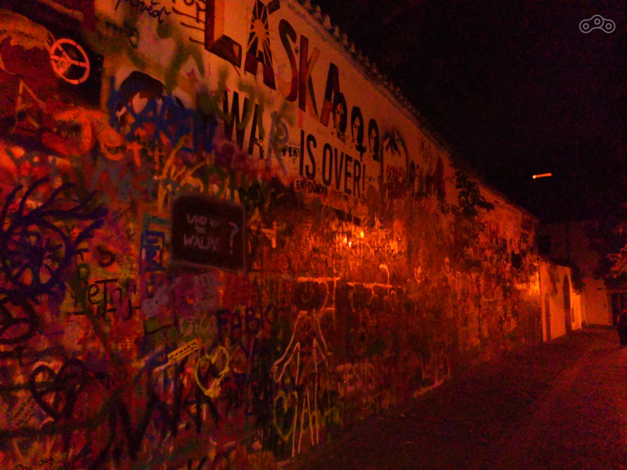Без гуляющих толп людей стало видно город. Это, например, стена Цоя Леннона.