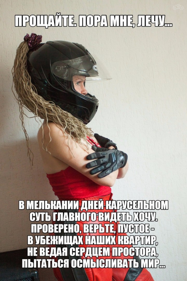 А еще я не знаю английский. И не имею пока денег в достаточном количестве и понимания, где их добывать прямо в дороге. И не могу решить ни одну мало-мальскую техническую мотопроблему. И я еще не наработалась на своей любимой работе, я так долго к этому шла, и искренне наслаждаюсь ею. Как? Всего пять отговорок? Нет, на самом деле только одна. Я пока еще боюсь.