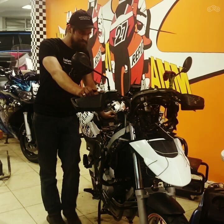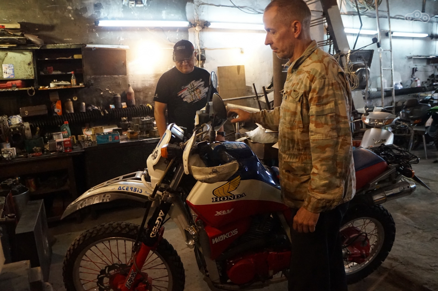 Сережа – легендарный человек. Через его дом пролегал путь сотен мотопутешественников, кругосветчиков со всего мира. Именно он сделал коляску-холодильник для Олега Харитонова, а еще возродил мотоцикл погибшего французского мотоциклиста, облачив КТМ в алюминий и оснастив баком в 53 литра! Еще у Сергея двухэтажная мастерская с лифтом, множество редких мотоциклов и доброе сердце. С теплом вспоминаю нашу встречу.