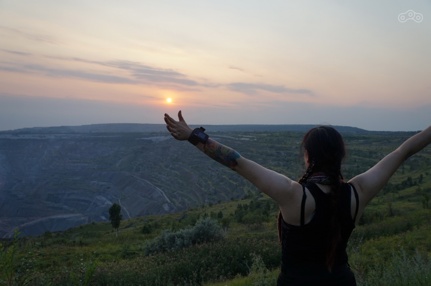 Здесь на байкпосте меня встречает Саша и Виталик, с которым судьба нас свела несколькими месяцами ранее в моем родном Минске. Виталя поселил меня в гостишку и мы отправились исследовать Коркинский разрез –самый глубокий в Европе и второй в мире угольный разрез. Сейчас его глубина достигает уже 500 метров и продолжает увеличиваться. Проектная глубина – 610 метров. Диаметр воронки разреза – полтора километра. Сначала немного поплутали по окрестностям, потом встретили местного гусевода, который провел нас к разрезу. Обалдеть, какой он огромный! Белазики, ползающие по разрезу кажутся маленькими жучками. Первый раз такое видела. Масштаб впечатляет.