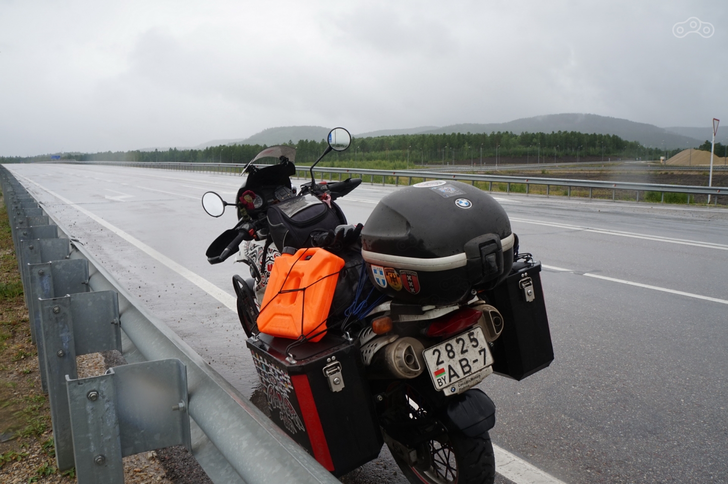 12 день пути, надо доехать до г. Свободный к Сереже по прозвищу Алюминий. Через 100 км от Могочи начинается ливень, который льет весь день и успокаивается только возле самого Свободного. В этот день мало фотографировала и снимала. Все силы ушли на дорогу. Когда доехала до Сергея сухих мест на теле уже не было. Да еще и какое-то нашествие собак на трассу началось – целых 3 на протяжении последних 50 км выскочили под колеса, еле увернулась.