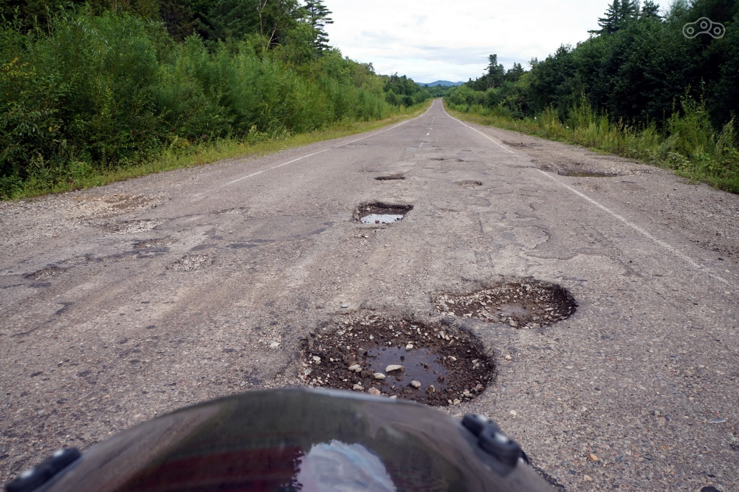 Вот и последний рывок до парома. Билет у меня на 11 августа, иду строго по графику. 10 000 км за 14 дней. А вот не так всё просто. Утром меняю в Хабаровске задние колодки, мои совсем закончились и выезжаю на дорогу до Ванино. Её условно можно разделить на 2 отрезка – до Лидоги и после. Из Лидоги надо позвонить в диспетчерскую порта и сообщить «Привет, я Катя, я еду к вам, моё место никому не отдавать», так как места на пароме в дефиците и люди могут ждать несколько дней, чтобы попасть на Сахалин. По пути В Лидогу есть один очень неприятный участок – скальник с ямами длиною в 7-8 км. Выглядит он как поле боя – повсюду валяются остатки шин, фар, пару бамперов, так как дорога кошмарная. Вначале еду осторожно, но ничего не видно из-за пылящих передо мной машин, поэтому откручиваю газ, встаю на подножки и обгоняю машины. Страху натерпелась, но как же была рада обычному плохенькому асфальту!
