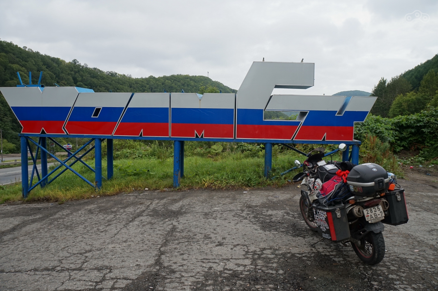 Днем 14-го августа мы с Генри поехали в Корсаков уже на кран-балке, где на въезде нас уже ждал Сергей из местного клуба Амигос. Наверное, мой рассказ выглядит немного нелепо, ведь я хоть и еду одна, но постоянно получаю поддержку от мотоциклистов, но в этом и есть Россия.