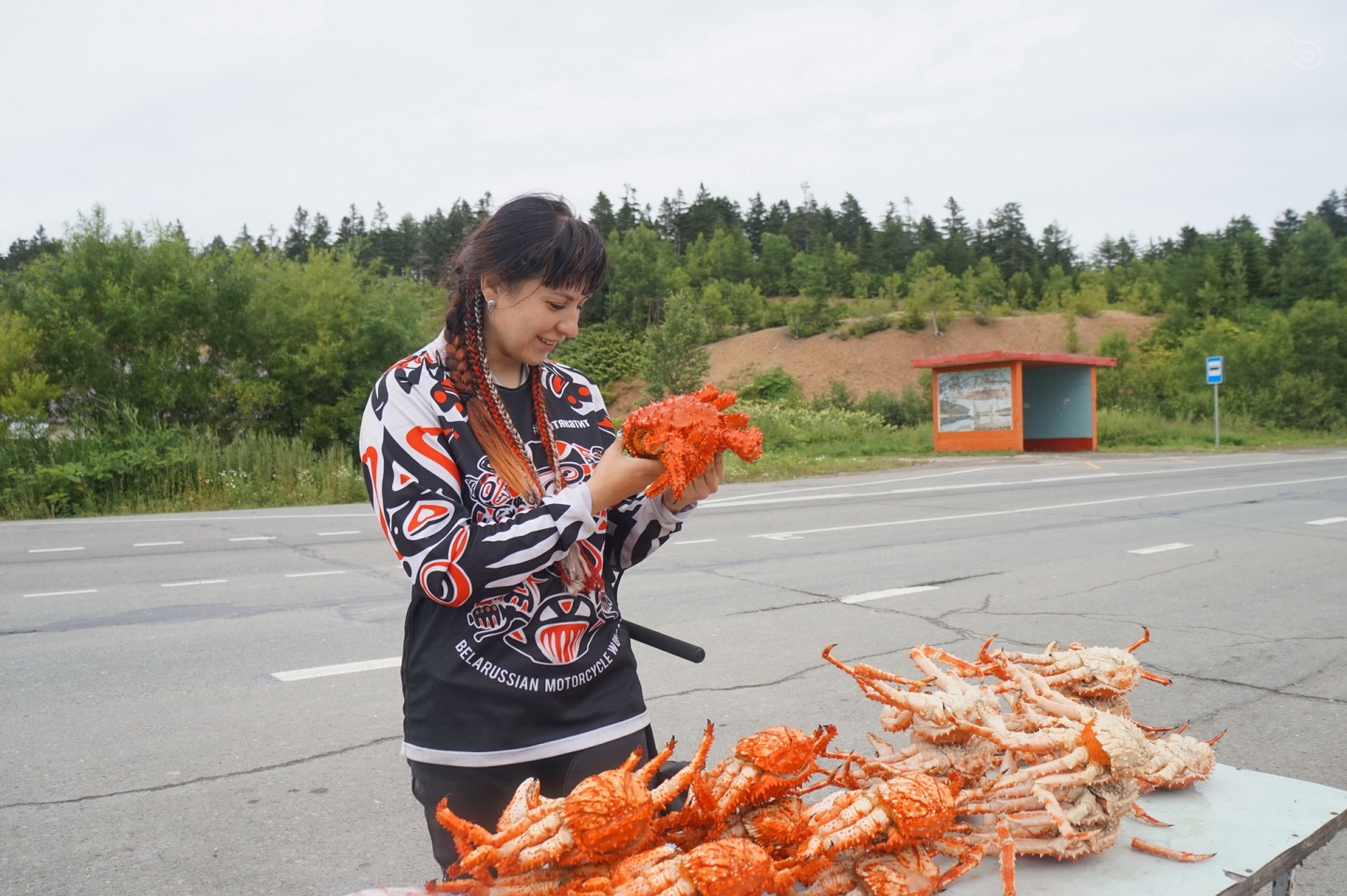 Теперь пришло время крабов – их попалось очень много, их просто закидывают в морскую воду и варят, пока они не станут оранжево-красными. Вкуснотища! Одного краба я даже довезла из Южно-Сахалинска мужу домой, правда он немного подтаял и запах был во всем самолете. Но муж остался доволен.