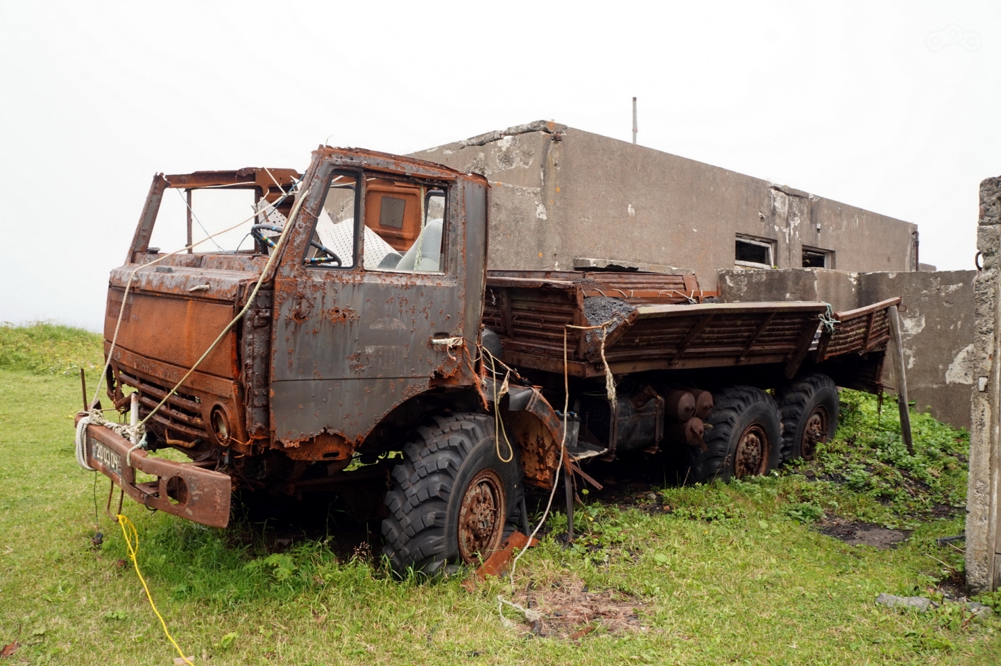 В предпоследний день едем на «Четырку», так местные называют гору Шикотан, высота которой 412 метров. Она самая высокая на острове. Вершина горы вся окутана туманом, но развалины военных локаторов в такую погоду дают ощущение того, что я как минимум очутилась в Стоунхэдже.