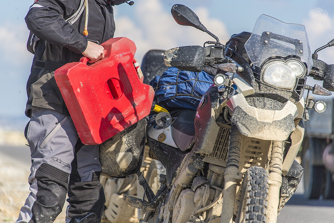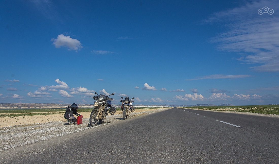 Делаем дозаправку. На участке от Бейнеу с заправками все плохо — нужно иметь хотя бы 5-10 литров на байк, чтобы дотянуть до следующей заправки. Здесь многие ездят на газу.
