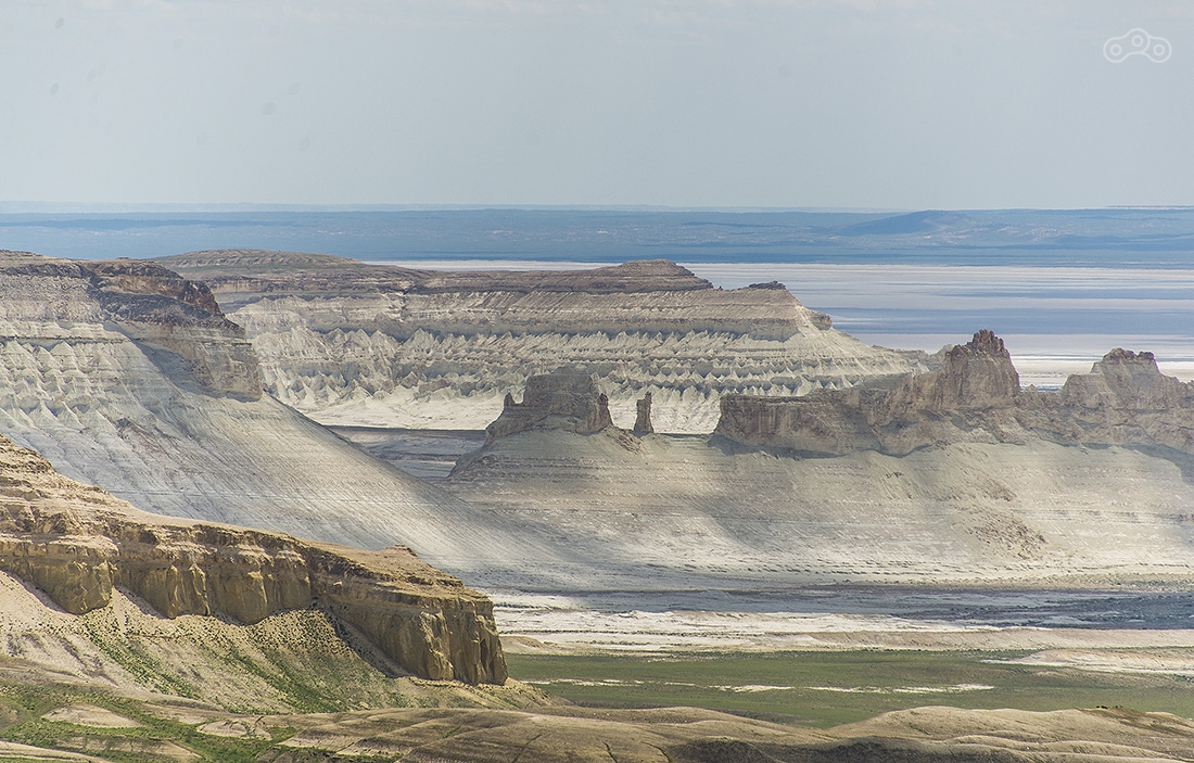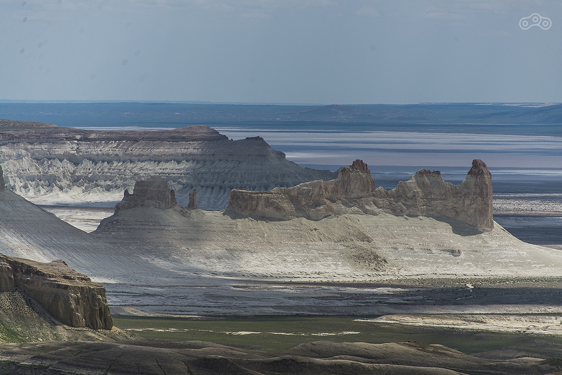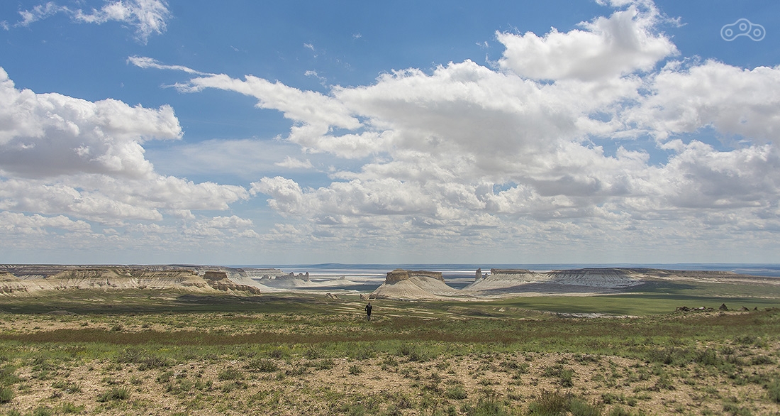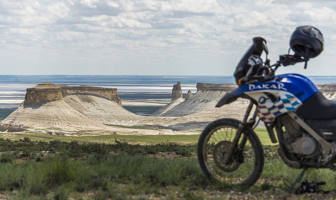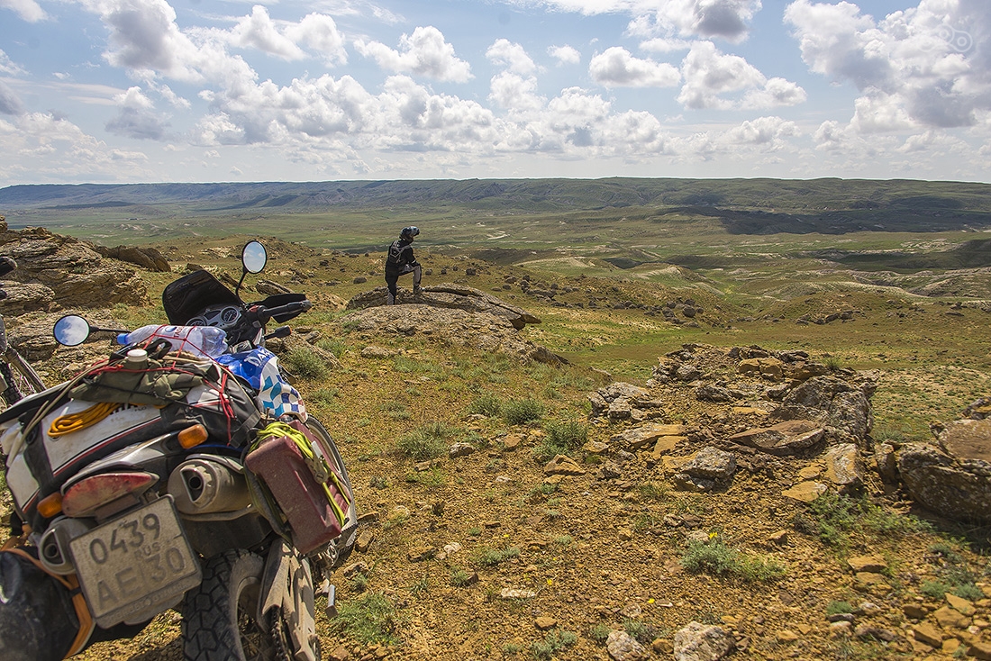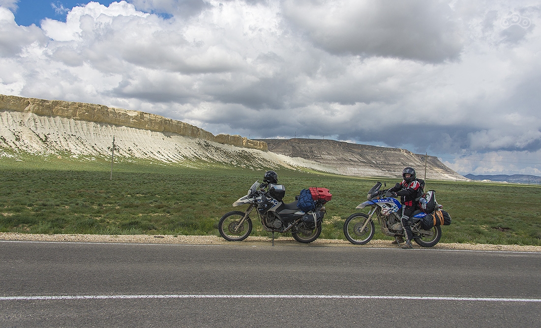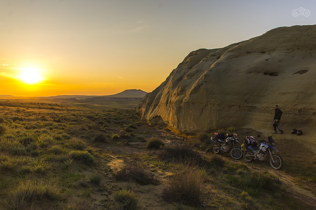 По дождям и грязи доехали до Кульсаров, переночевали в неплохом отеле (название уже не вспомню), утром выдвинулись в направлении Бейнеу. Там живет тот самый дядя Лёша, который может помочь с ремонтом мотоцикла, ночлегом и питанием. У него что-то вроде гостиницы для мотоциклистов. Но заезжать к нему мы не стали, поехали дальше. Буквально через несколько километров после Бейнеу дорога пошла вниз и мы поняли зачем мы все это затеяли...