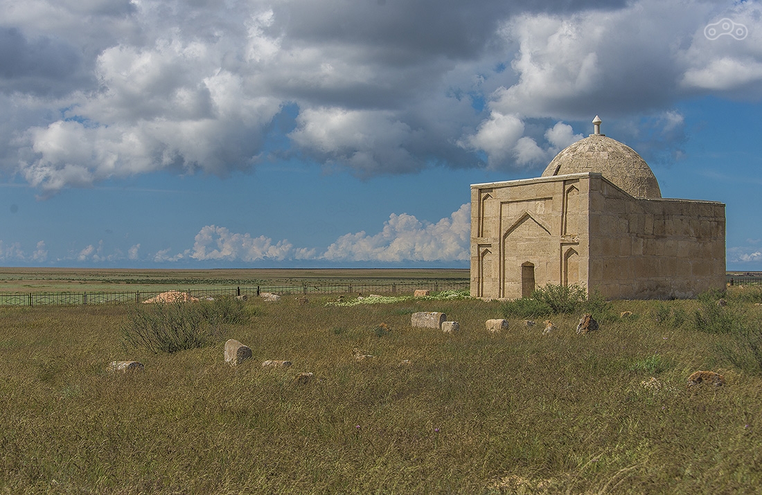 Увидели издалека кладбище. Вообще, кладбища в Казахстане — отдельная тема. Они очень красивые. На подъезде к Актау кладбище похоже на какой-то сказочный городок.