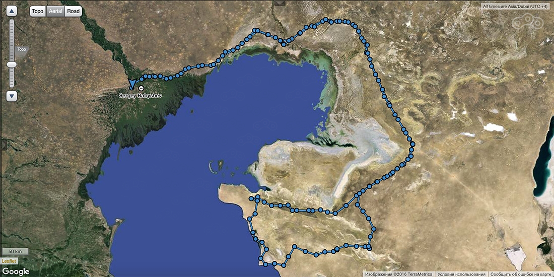 Это наш маршрут, записанный спутниковым трекером. За нашим путешествием можно было следить в реальном времени.