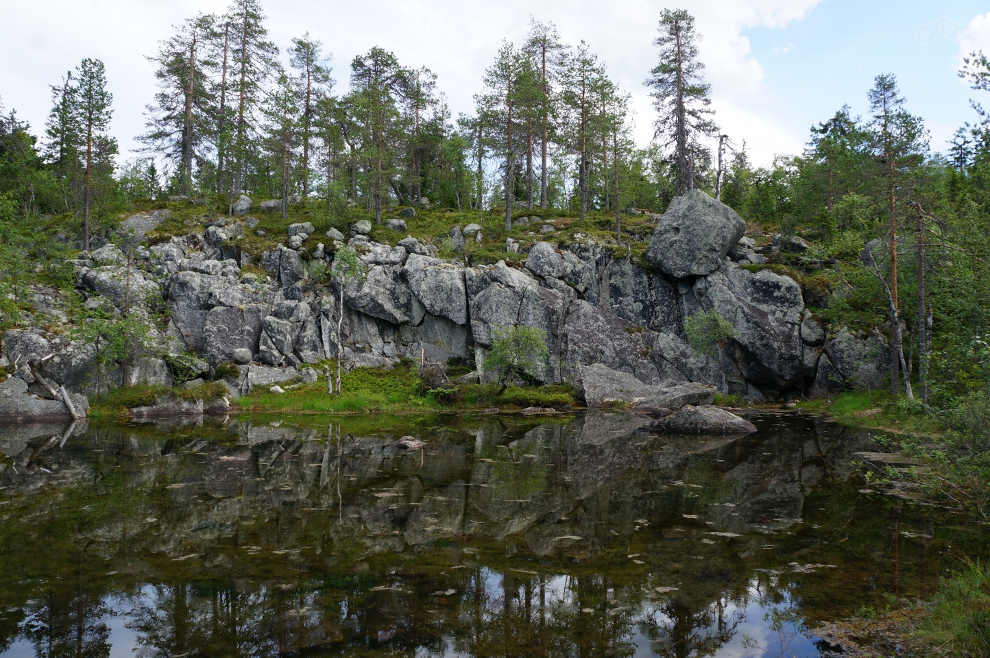 Именно поэтому по пути к южному склону нам пришлось повернуть и проехать чуть ли не до конца каждую своротку и тропинку, идущую от основной дороги, натыкаясь на дикие красоты Карелии, и возвращаясь на основную тропу. Именно на ней, к слову, были и самые раскатанные броды – достаточно глубокие, чтобы утопить в них легковой автомобиль, но вполне подходящие для того, чтобы аккуратно поехать их на пите, или, в крайнем случае, прокатить его руками по бровке между болотистым берегом и глубокой водой с твердым дном.