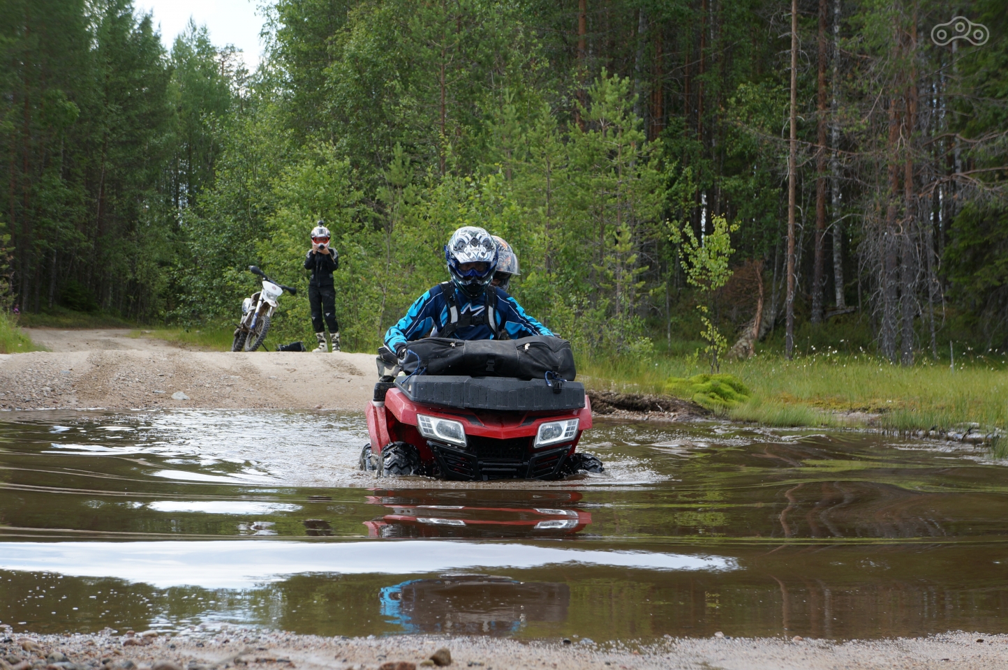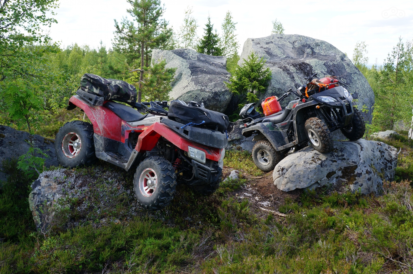 Что тут делать на питбайке? Да все тоже самое, с поправкой на действительность Карелии: красивейшая природа, эдакий микс мхов, лишайников, камней, черники и деревьев, обилие грейдеров (асфальта в этих краях почти нет), куча дорожек, троп, направлений, интересный ландшафт, не слишком глубокие броды местных речушек, идеальная локация для пита и не только. Вместе с ним с нами в путешествие отправилось еще и два квадроцикла Yacota, сопоставимых с питом по динамике и проходимости: 200 и 250-кубовые моторы, задний привод, в такой компании не будет скучно ни на пите ни на квадре.