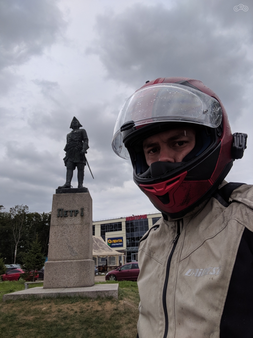 Первой остановкой стала Тверь. Очень милый и приятный город, на въезде встретивший меня огромной колонной из автомобилей с лентами, сигналящих окружающим о том, что еще один вольный ездок все же попался в капкан. Бедняга...