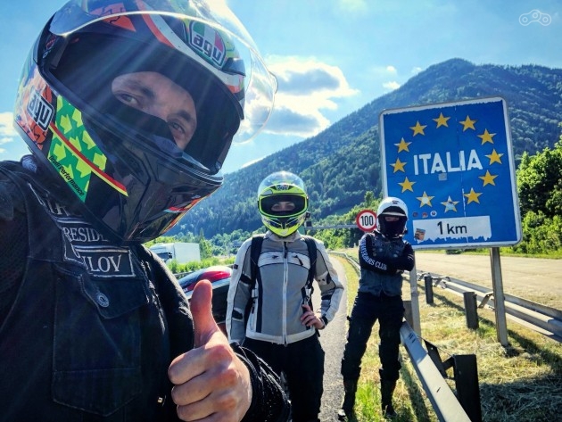 Покинув невероятно красивую Австрию, мы, к своему удивлению, вдруг очутились на границе с Италией. Остановив мотоциклы у первого попавшегося знака с указанием страны, сделали несколько фотографий. Попытались выразить свою радость на видео, но слов, как это бывает, не хватило.