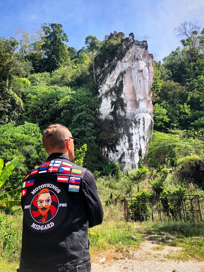 Мы хоть и зовемся Мотовикингами, но питаем слабость к буддистским храмам, вот и здесь, в мусульманской Малайзии, не смогли проехать мимо храма Ват Варнарарм, где в скале высечена гигантская статуя богини милосердия Kuan Yin.