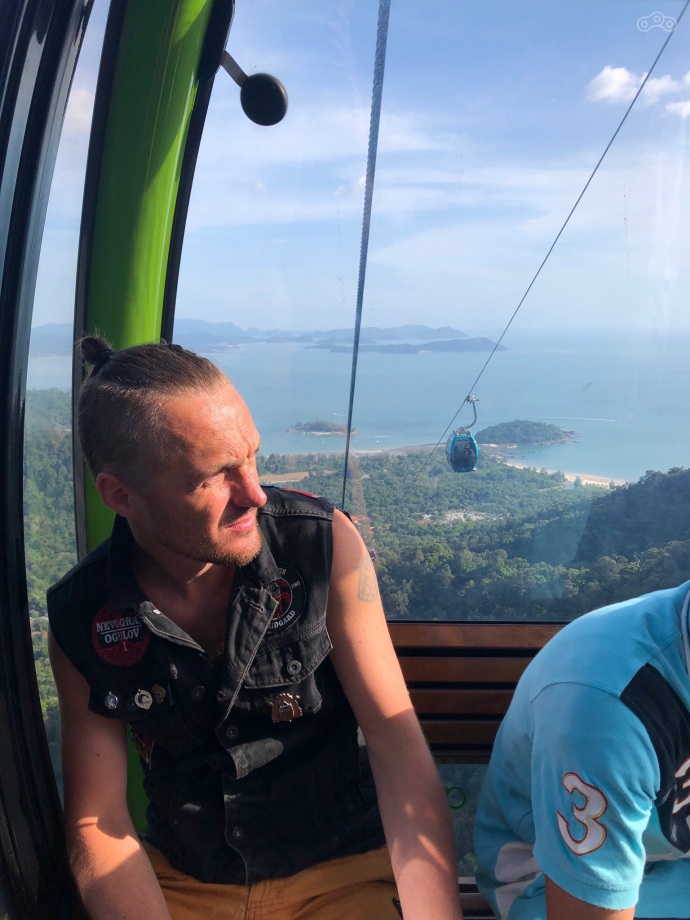 Последней точкой, которую мы хотели посетить на этом острове, был знаменитый Небесный Мост (Langkawi Sky Bridge.) — высочайшее достижение инженеров Малайзии. Уникальность его в том, что он является самым высоким одноопорным во всем мире. Мост действительно опирается на единственную металлическую опору. Всю мощь сооружения крепко и надежно распределяют между собой 8 тросов, прикрепленных все к той же единственной опоре. Создается впечатление, что он буквально парит над пропастью, а в очень ветреные дни еще и немного колыхается.